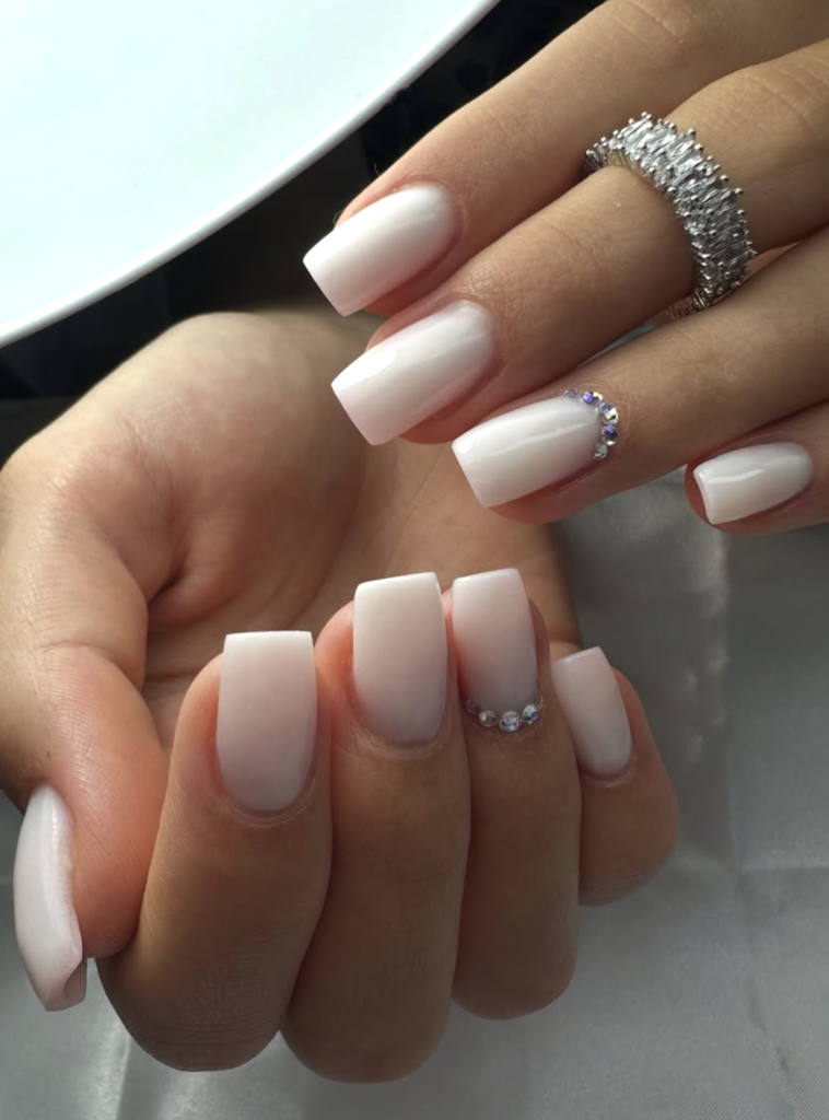 Soft white ombré always has a way of looking angelic, but in winter, it hits especially beautifully. This milky fade paired with tiny crystal accents feels dreamy — almost bridal but still completely everyday wearable.