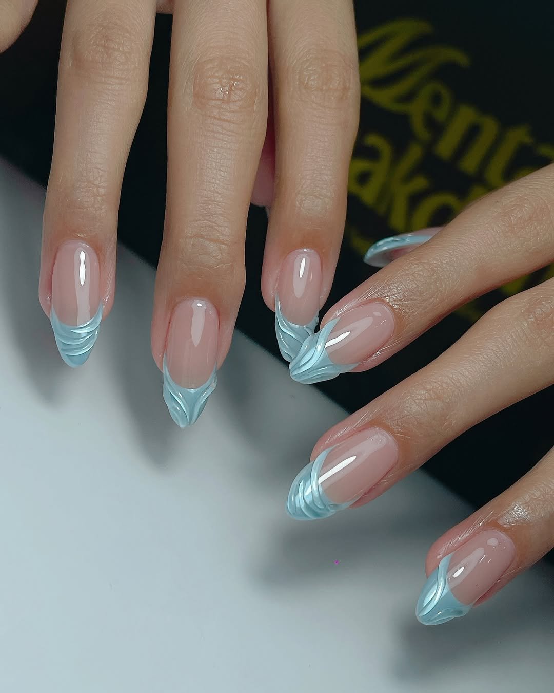 If minimal icy nails exist, this is probably what they look like. The classic nude base keeps things clean and wearable, while the sculpted icy blue tips bring in a soft frosted effect.