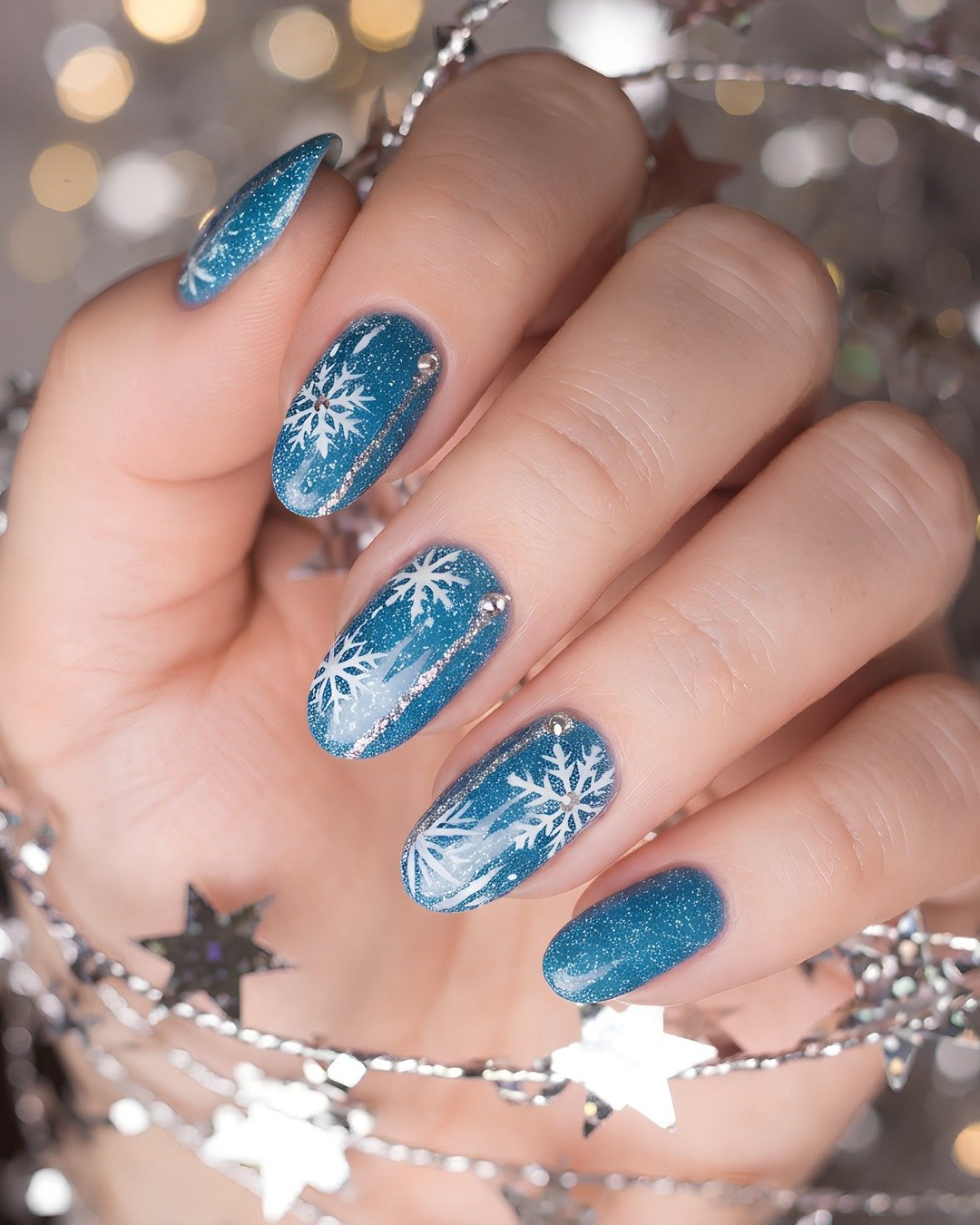 What makes this set work so well is its simplicity. No heavy nail art, no extra embellishments—just that rich glittery blue doing all the talking. It’s sleek, elegant, and perfect for anyone who loves winter nails that feel polished without being over-the-top.