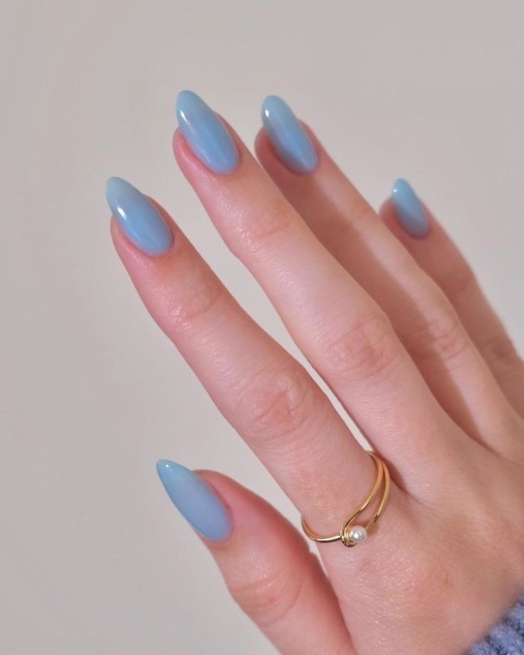Sometimes the simplest nails end up being the prettiest. This smooth pastel ice-blue shade feels calm, clean, and effortlessly cool.