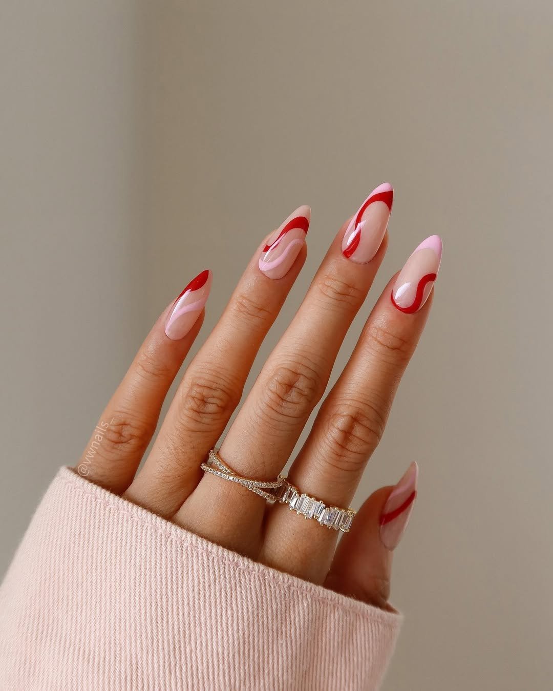 These swirly pink and red curves feel like the romantic reboot January didn’t know it needed. It’s playful but clean, bold but still soft. Like Valentine’s energy, but make it chic—not cheesy.