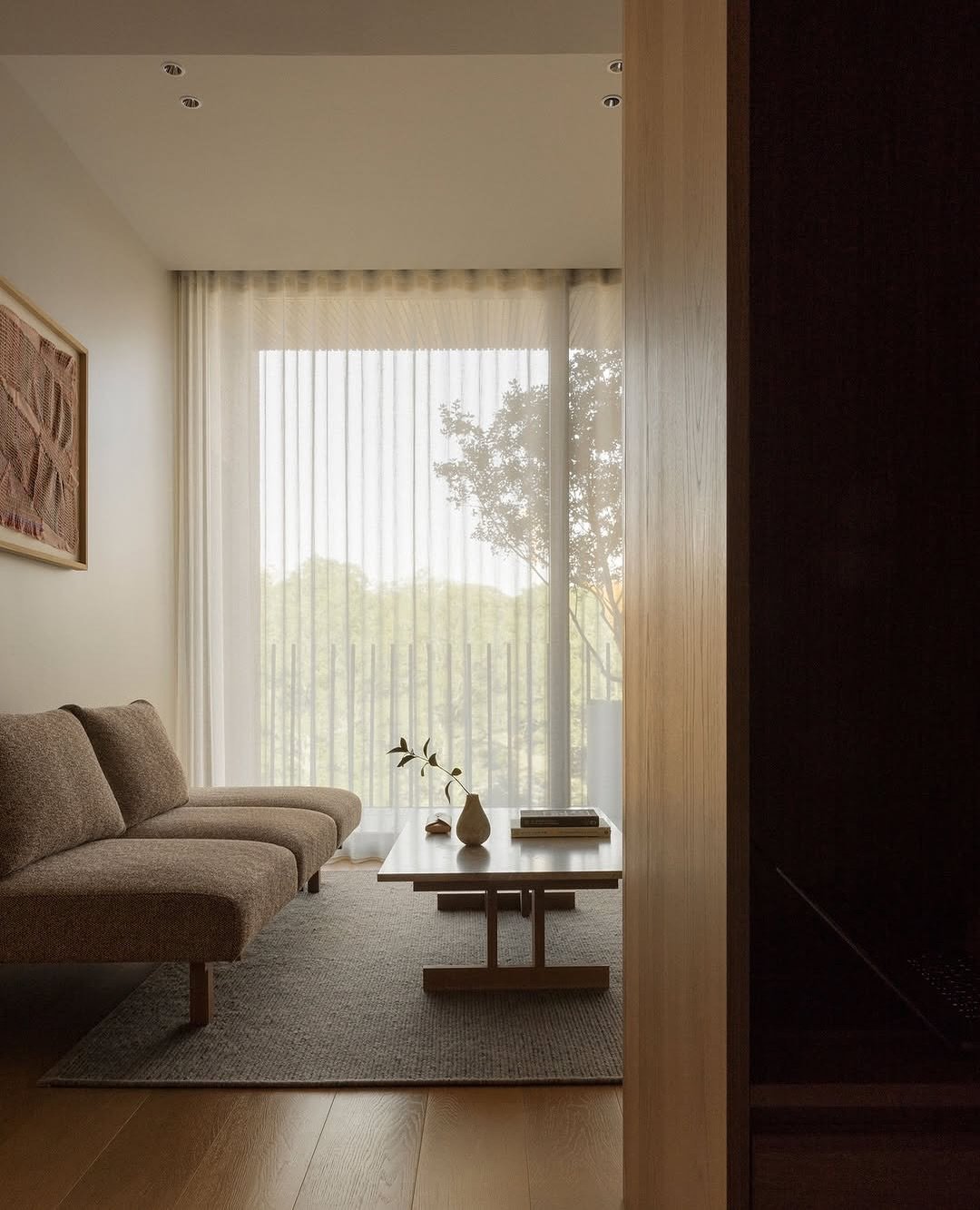 Here, the details do the storytelling. Soft filtered light, slatted wood panels, and neutral upholstery come together to create a space that feels both thoughtful and effortless.