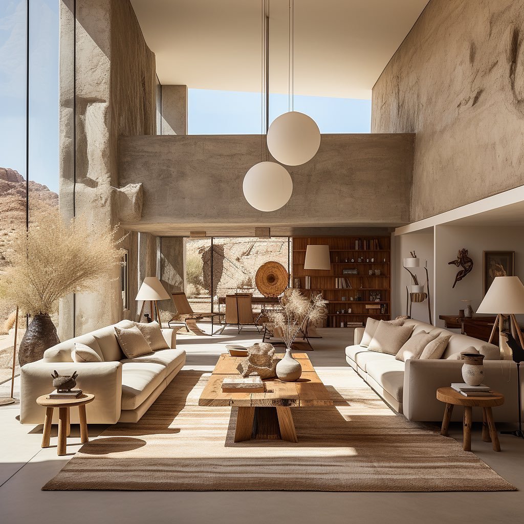 The palette stays close to nature, warm taupes, soft creams, muted stone. It’s a reminder that Japandi doesn’t have to be minimal in size, just in noise. The space speaks softly, even when it’s grand.