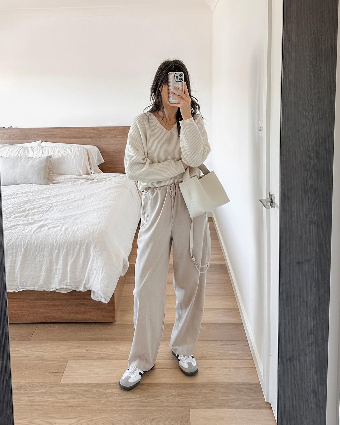 Relaxed knits and loose trousers create a look that feels like a deep breath. The neutral palette adds to that calm, effortless energy.