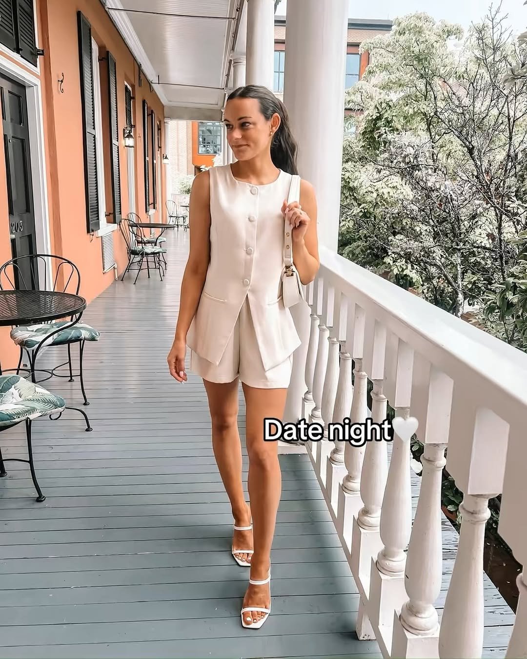Clean lines and soft cream tones create a look that feels calm and intentional. The structured top with matching shorts leans tailored, but the light fabric keeps it from feeling too formal.