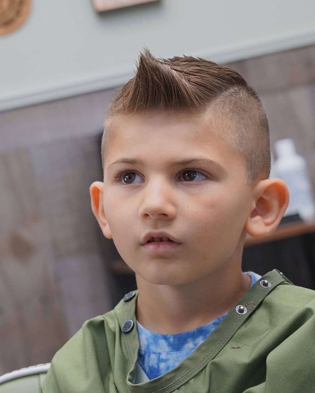 This mini mohawk moment is giving serious cool kid energy. The height is sharp, the fade is fresh, and the overall vibe is part rockstar, part best-dressed on the playground. It’s a cut that brings the personality—and then some.