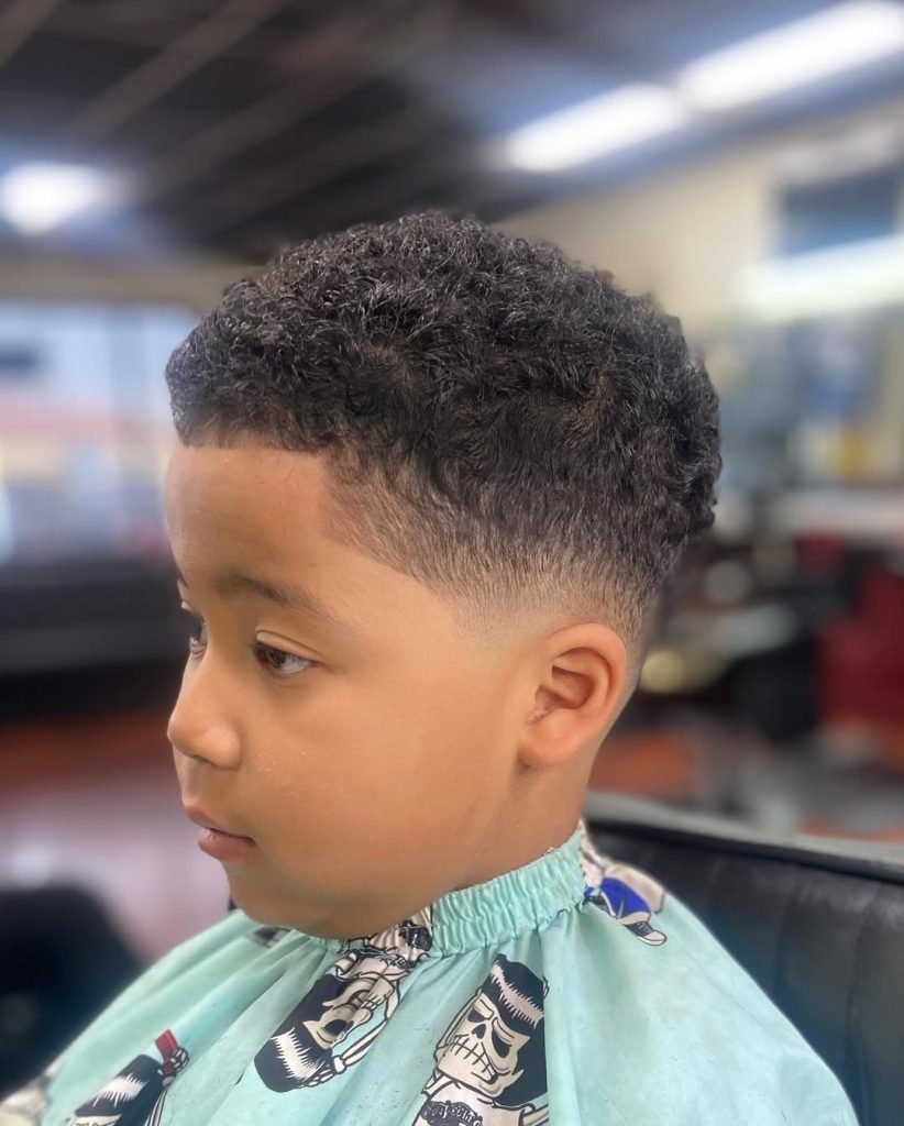 This mini mohawk moment is giving serious cool kid energy. The height is sharp, the fade is fresh, and the overall vibe is part rockstar, part best-dressed on the playground. It’s a cut that brings the personality—and then some.