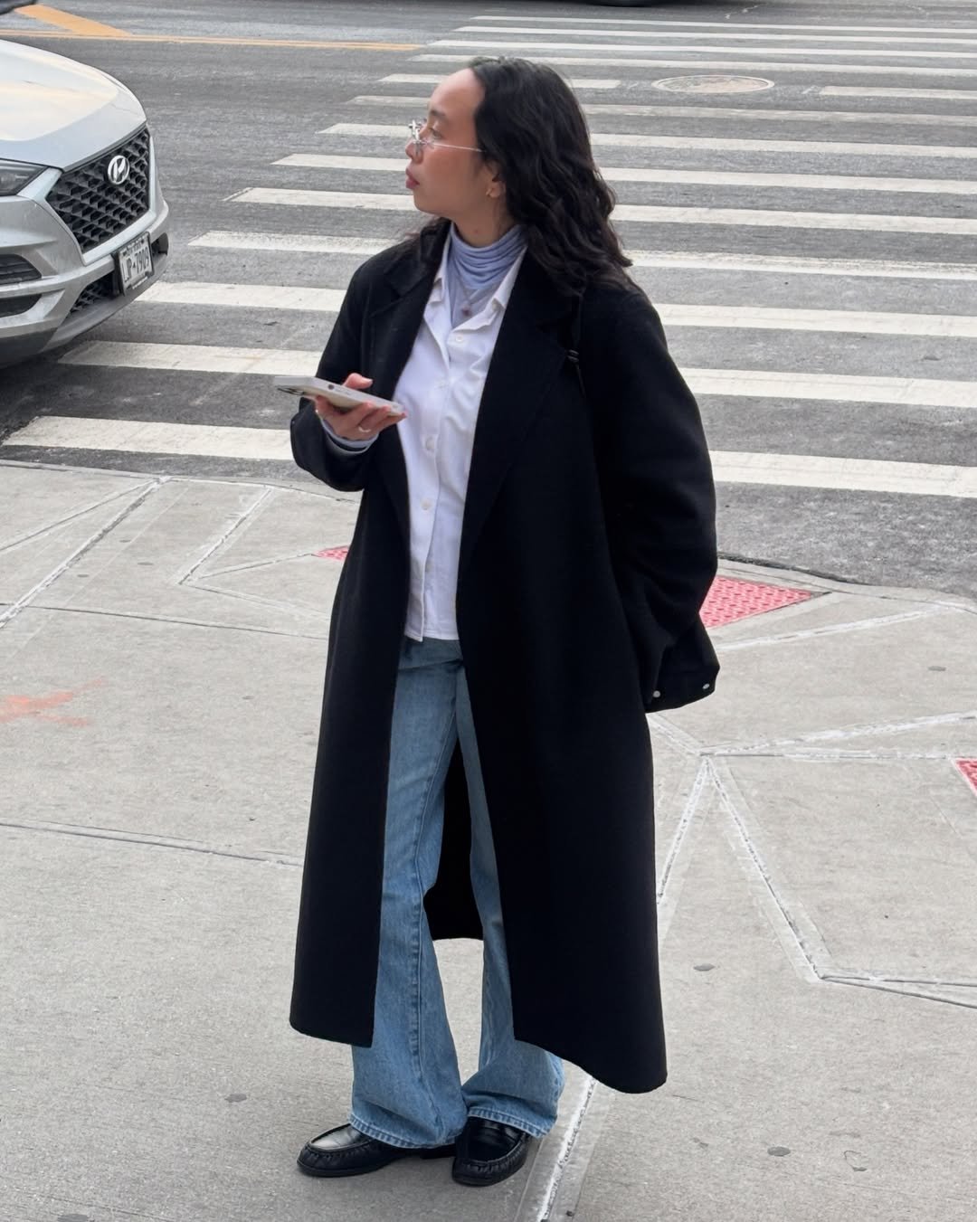 This outfit feels sharp in the most understated way. A tailored coat over a minimal base creates clean lines that feel intentional without trying too hard.
