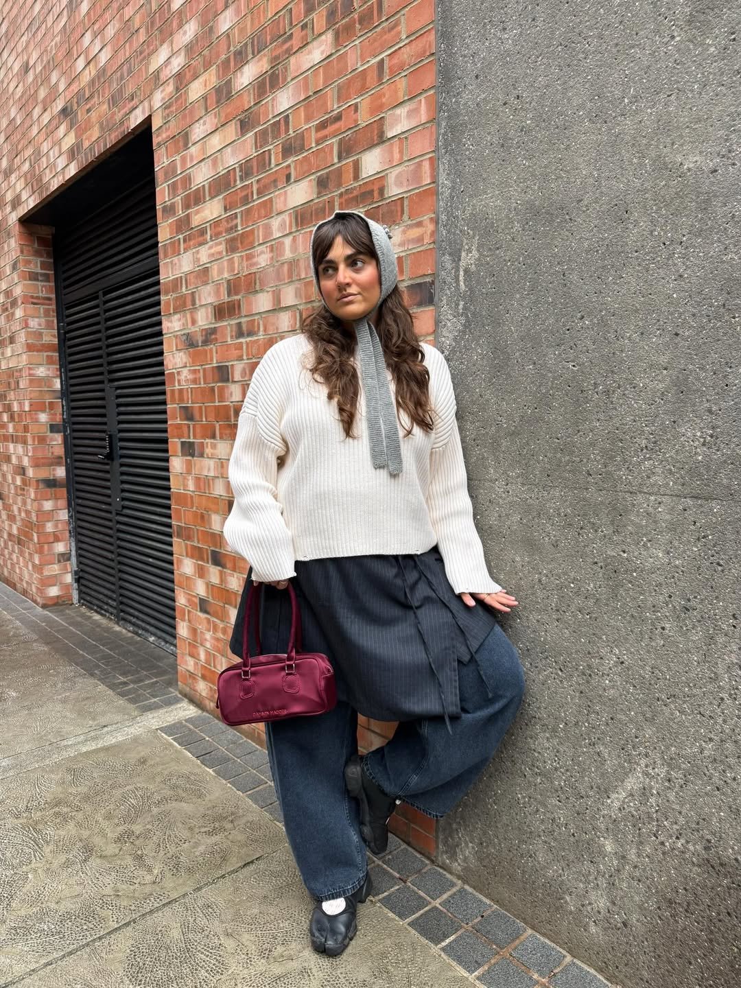 There’s a quiet comfort in this look that feels instantly familiar. The chunky knit paired with relaxed denim creates that cozy silhouette that doesn’t try to shape too much, just sits naturally.