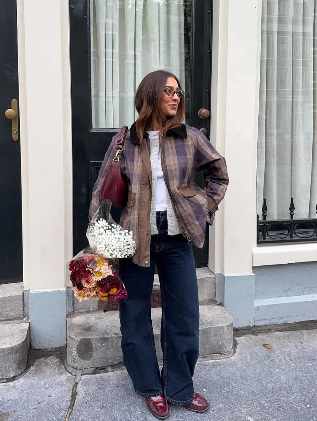 And then the flowers add that unexpected softness. It’s not just an outfit, it’s a moment, like stepping out to grab blooms and staying out a little longer than planned.