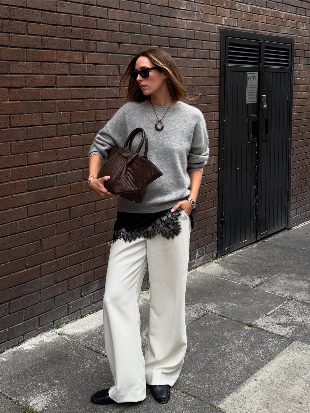 This look plays with contrast in the softest way. A relaxed knit layered over delicate lace creates that push and pull between structure and detail.