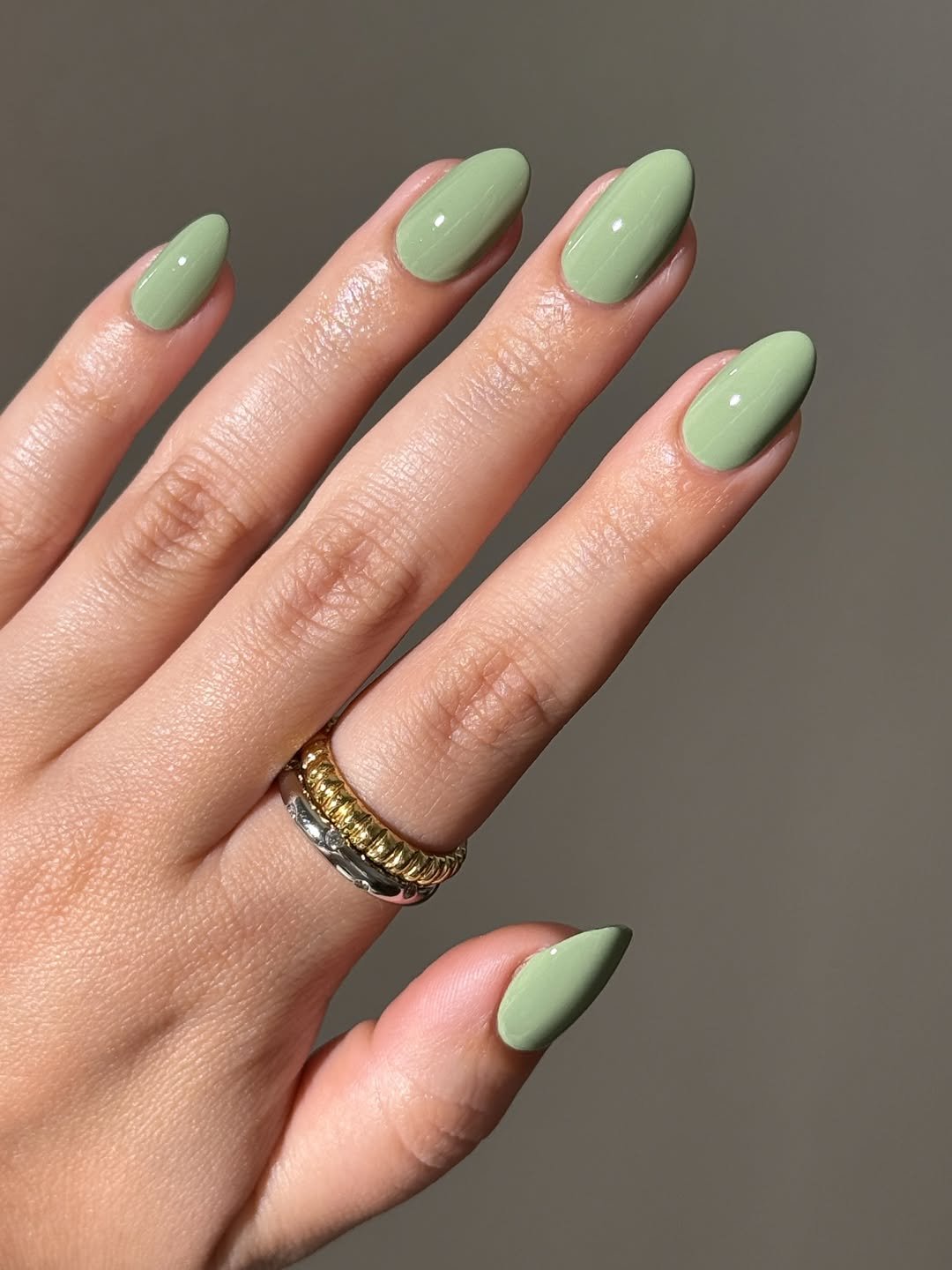Clean, even, and perfectly shaped, this glossy sage manicure is the definition of timeless. The color sits right between pastel and earthy, making it endlessly versatile.