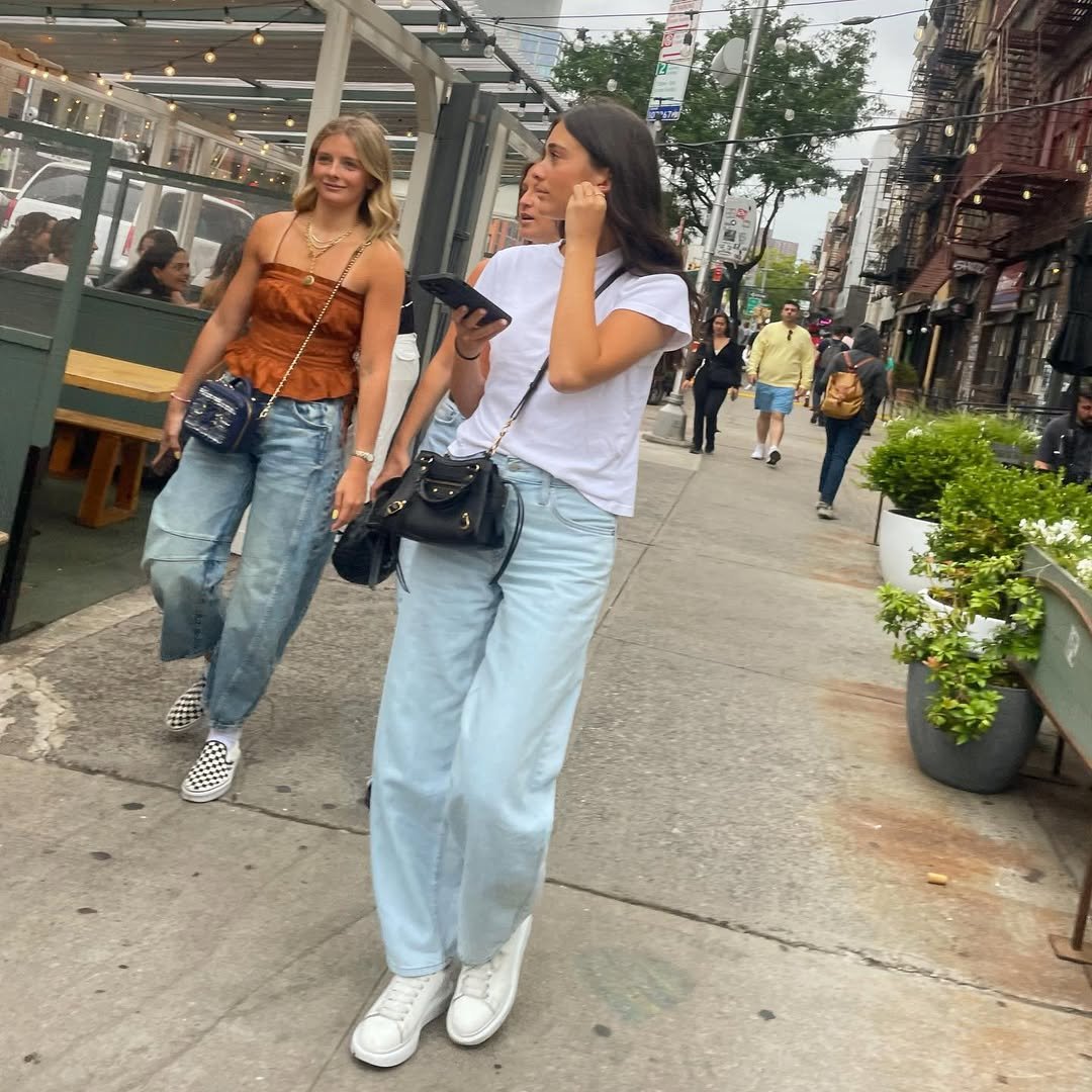 Light wash jeans paired with a simple white tee and sneakers capture that effortless city stride. Add a crossbody bag and you’re ready to weave through sidewalks and café lines with ease.