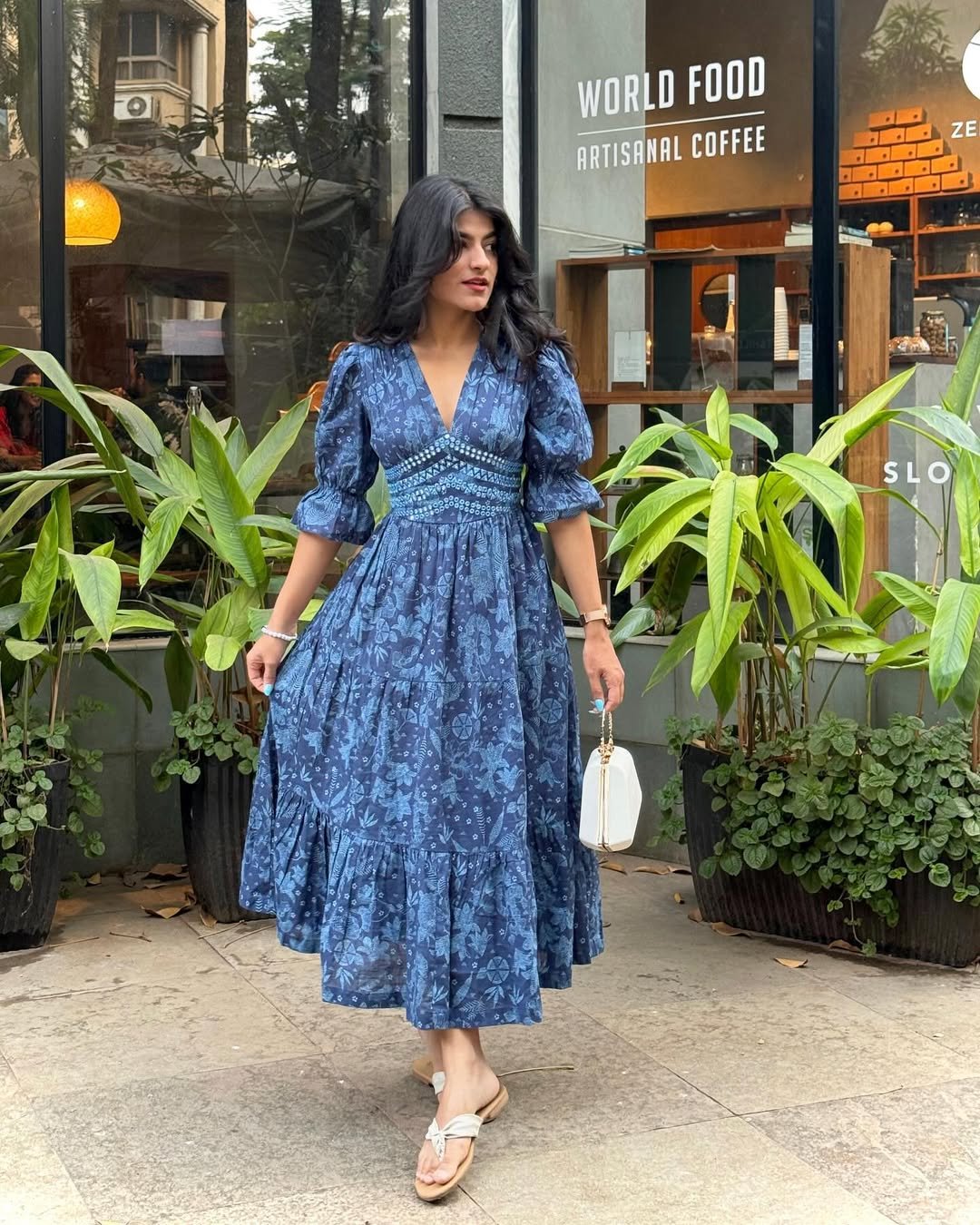 It’s understated in the best way. The kind of dress you could wear on a slow afternoon walk and still feel like you’ve stepped into a scene from somewhere else.