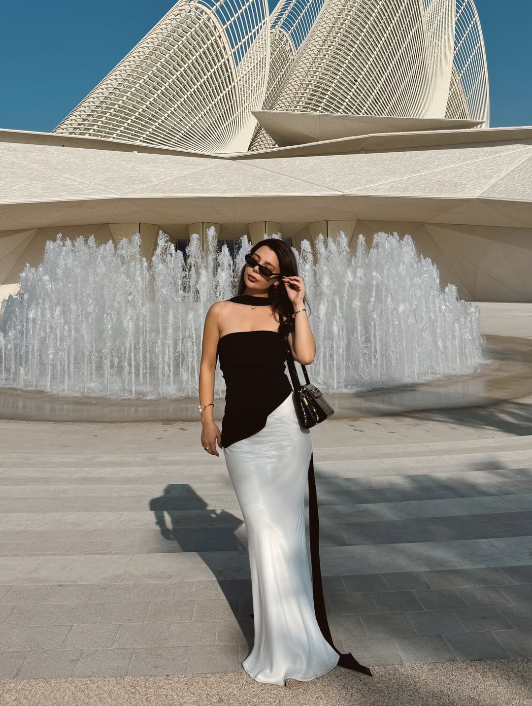 A sleek black and white swim look paired with a wrap skirt feels understated yet striking. The clean lines give it that elevated resort energy.