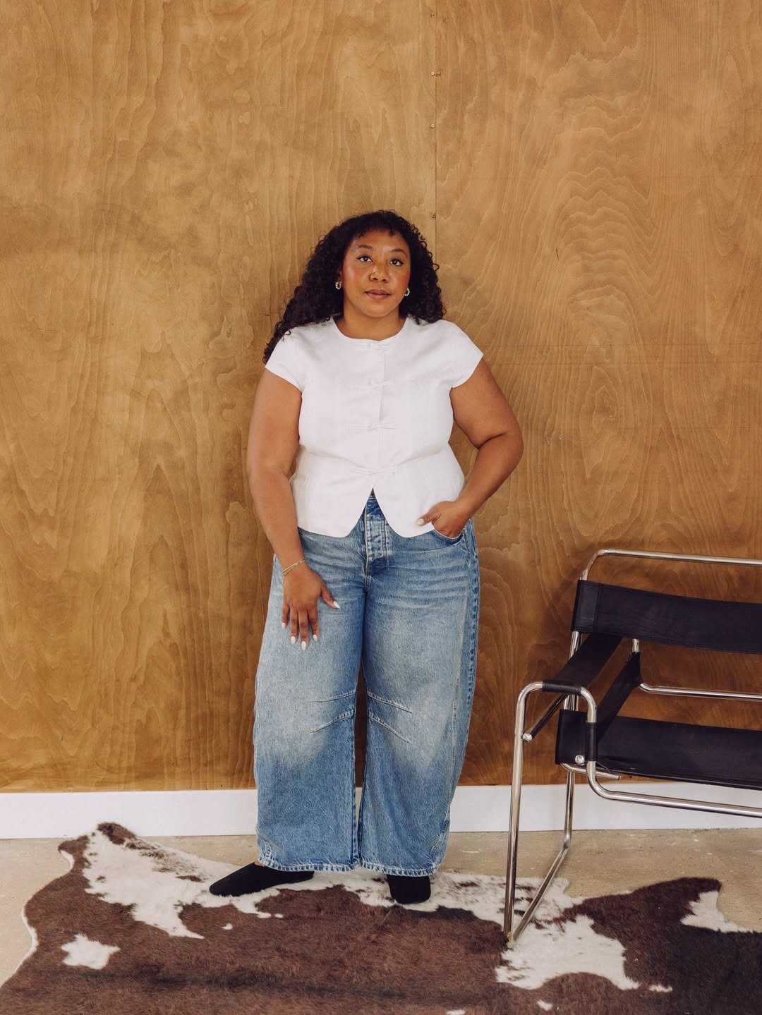A fitted white top with relaxed denim feels timeless in the best way. The balance between structure and ease makes it endlessly wearable.