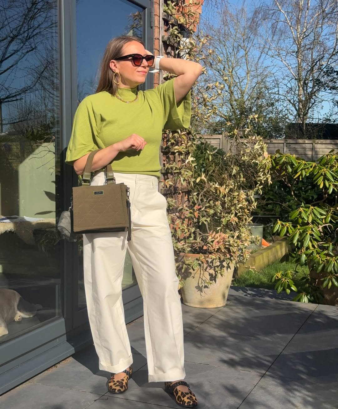 A soft green top instantly shifts the mood of a neutral base, bringing in that early-summer energy May is known for. Paired with cream trousers and subtle prints, it feels playful without stepping too far out.