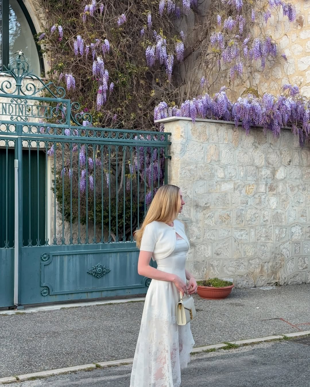 A delicate white dress set against blooming florals feels straight out of a storybook. The light fabric moves gently, catching the breeze in the most effortless way.