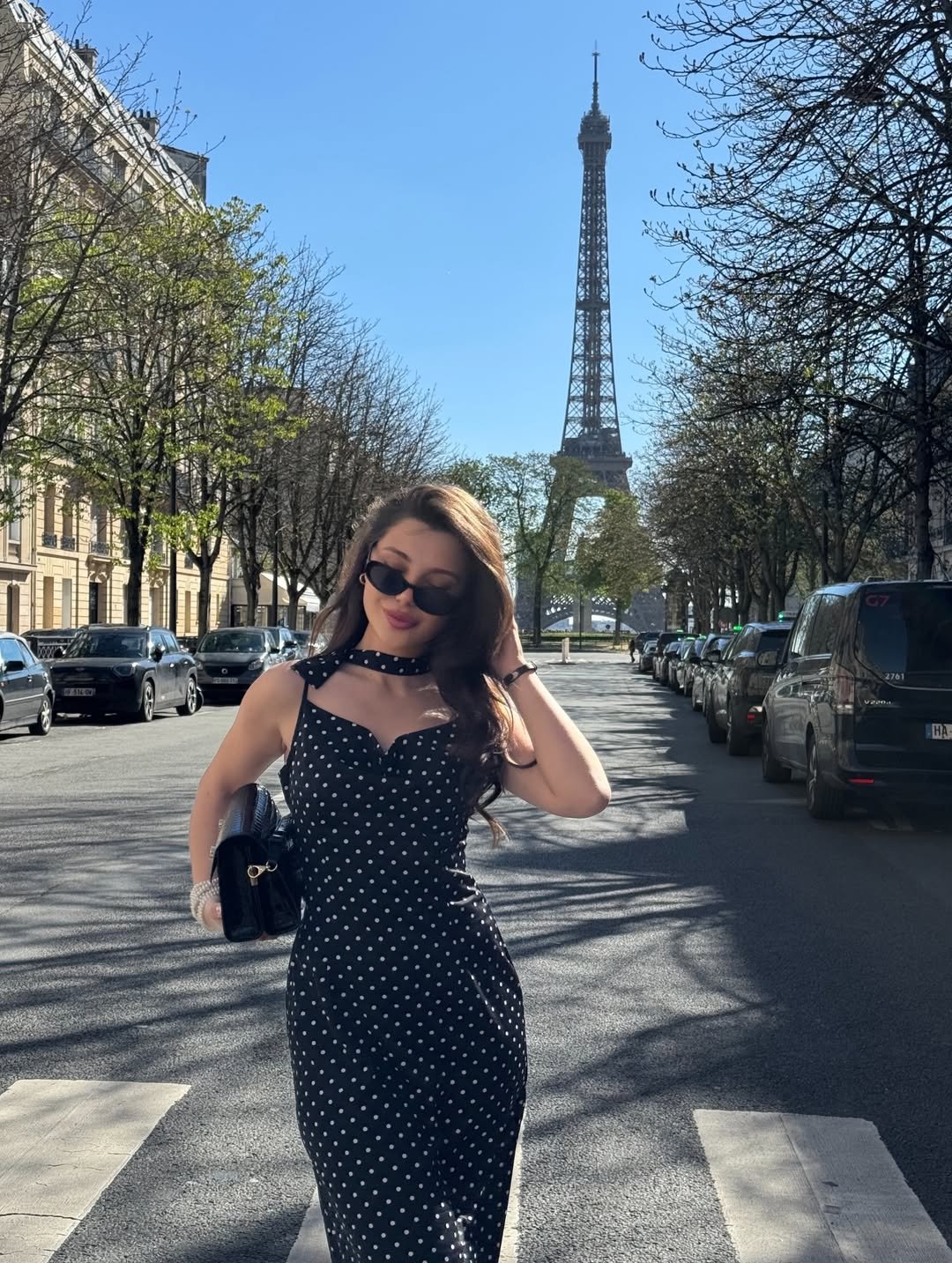 And the styling never tries too hard. Sleek sunglasses, minimal jewelry, and clean lines let the dress carry the story. When prints feel this delicate, it’s best to let them breathe and keep everything else simple.