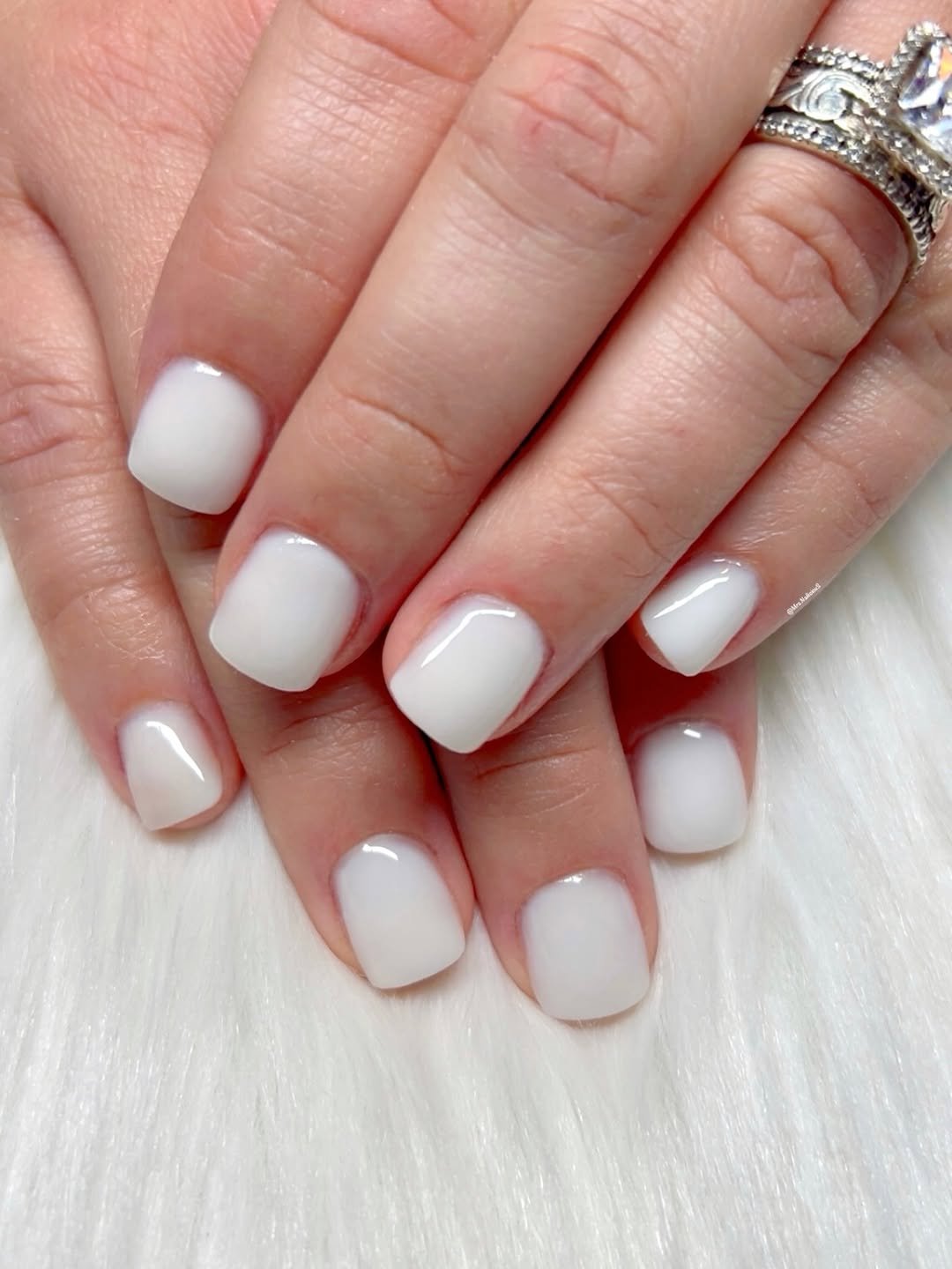 A super clean milky base paired with thin, crisp white tips—this set is the definition of elegant restraint. No gems, no fuss, just pure bridal polish.