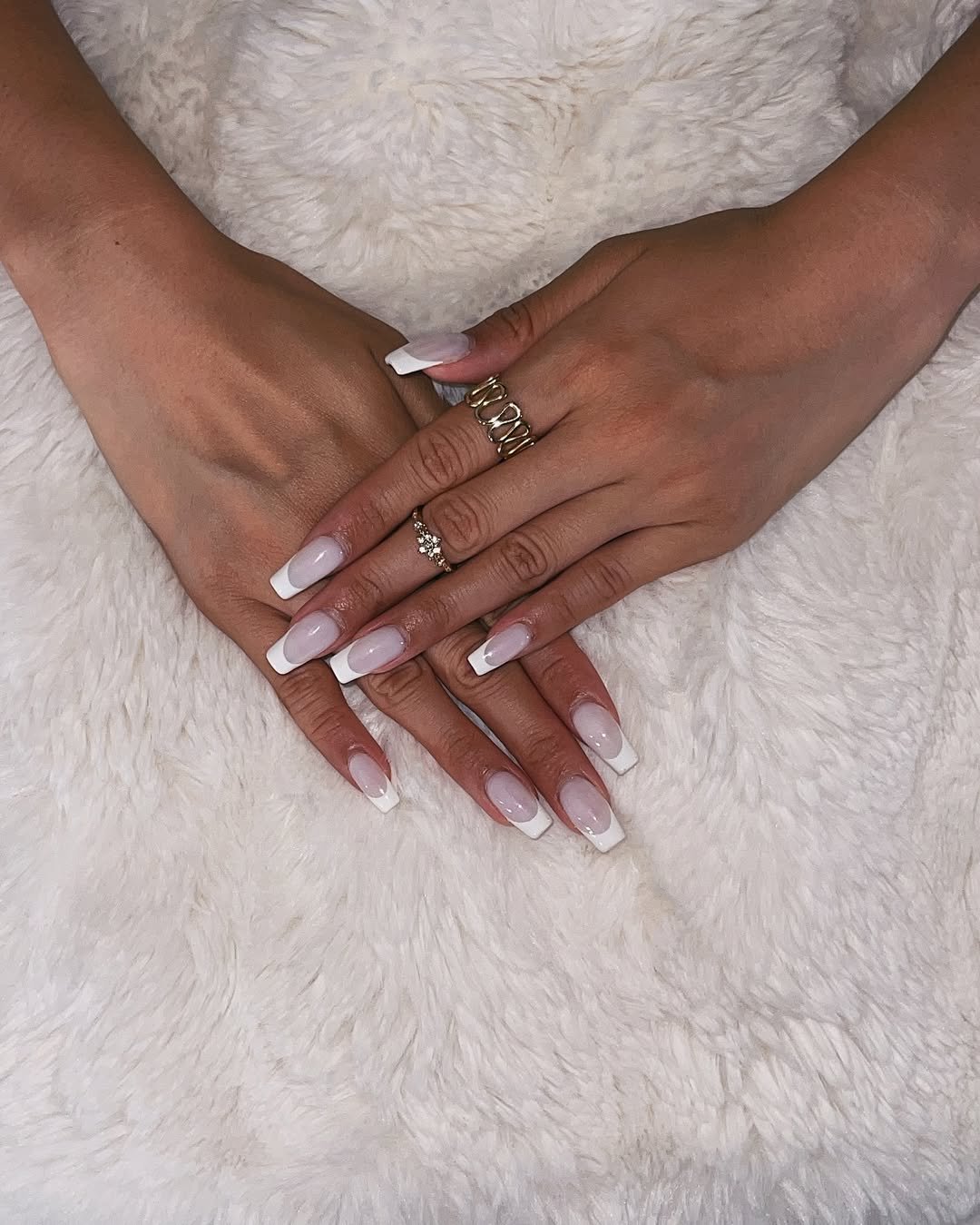 Leave it to Tom Bachik to deliver the cleanest milky white French we’ve ever seen. Smooth, glossy, and ultra-sophisticated, the shape and shade do all the talking.