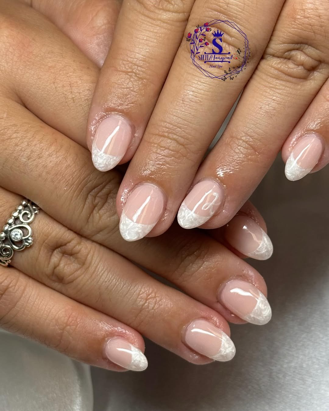 Perfect for someone who wants traditional white nails but still loves a little texture and drama.