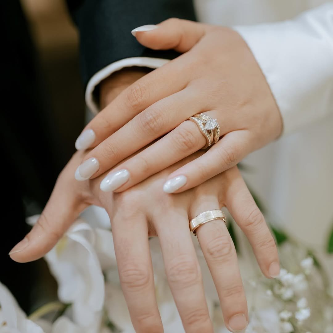 These milky white nails come alive with that sharp gold edge—like the nail version of a couture veil. They’re soft, angelic, and then bam—a metallic accent that lets everyone know the bride has taste and personality.
