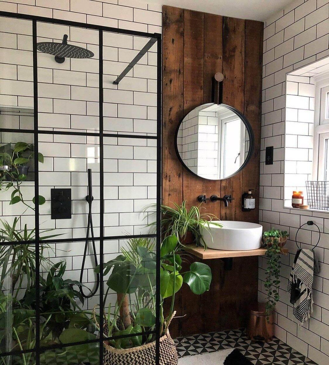 This one brings the outdoors in—and does it beautifully. The mix of plants, wood textures, and black-framed glass gives it that urban jungle vibe, but with a structured, modern edge.