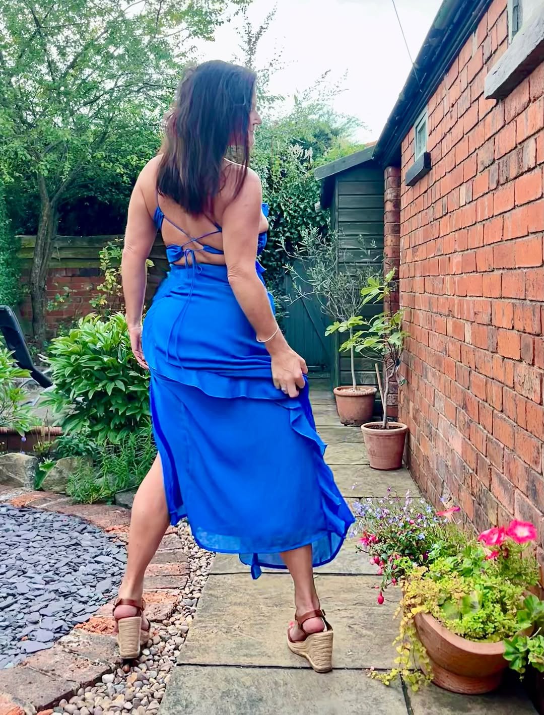 A vibrant blue dress with an open back feels bold yet effortless. The flowing layers and tie-back detail create movement with every step, catching the breeze in the most natural way.