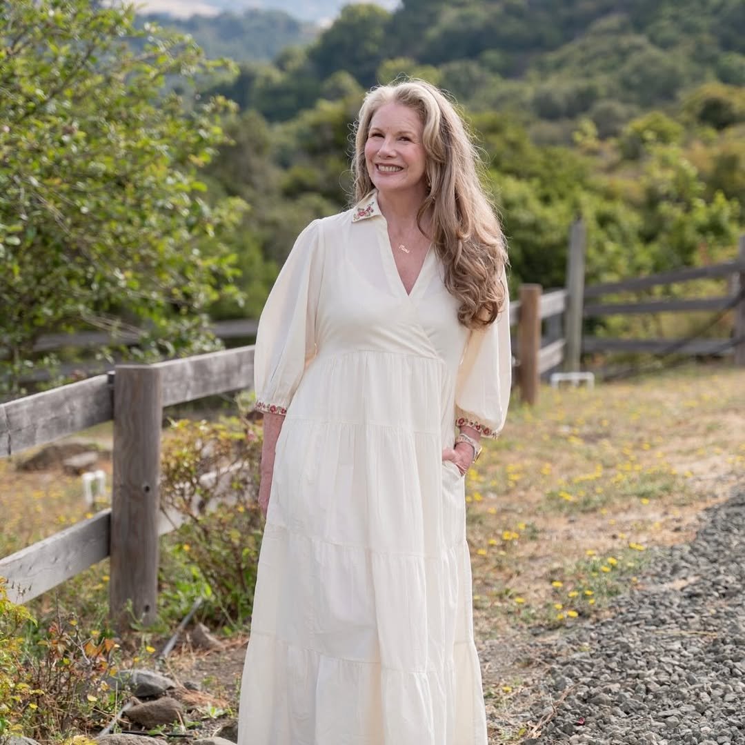 A soft ivory prairie dress brings a sense of calm that feels almost grounding. The tiered skirt and billowy sleeves create movement, while subtle details keep it feeling refined.
