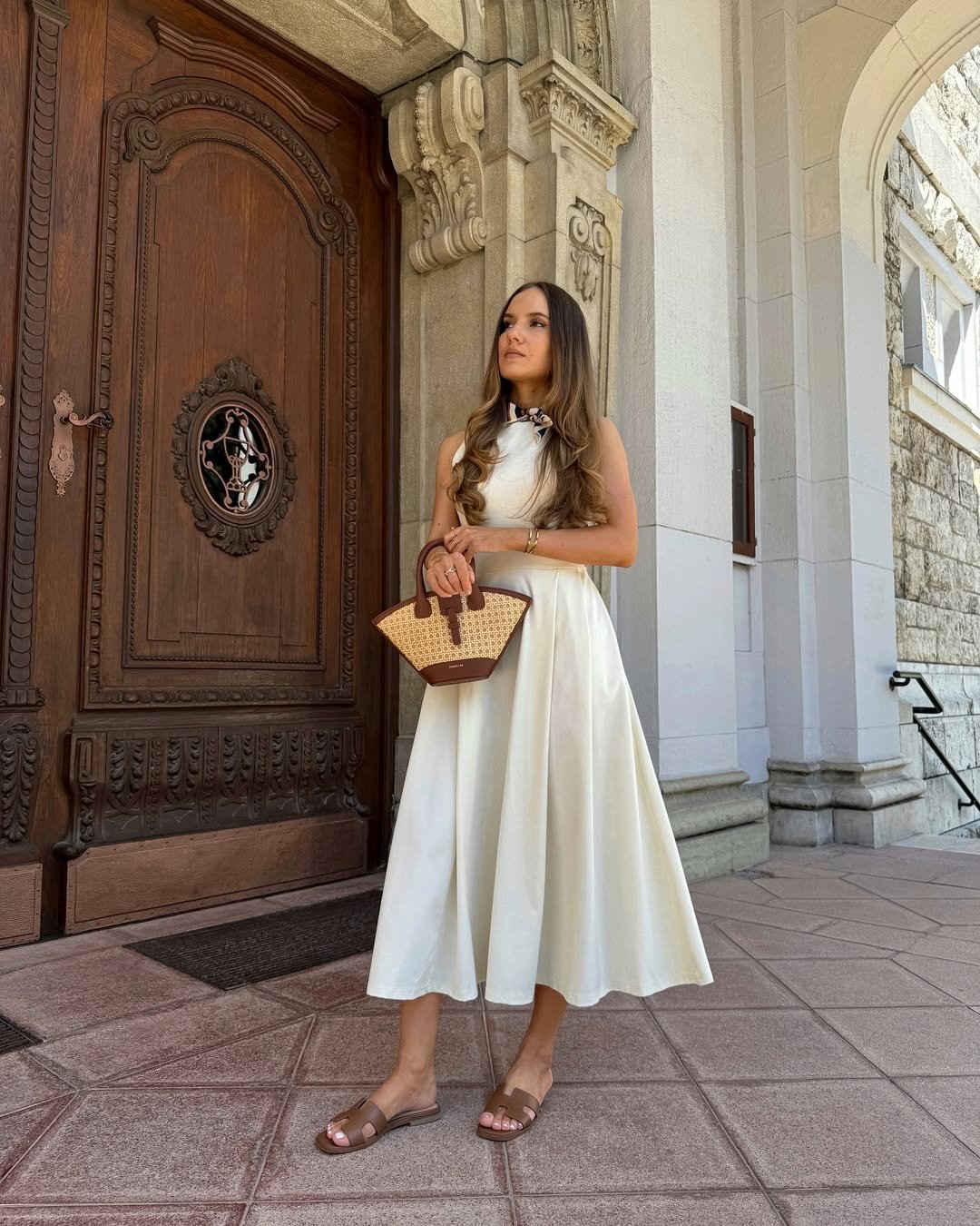 What stands out is how easy it feels. Neutral sandals, a woven bag, and minimal accessories let the simplicity shine. It’s polished without trying too hard.
