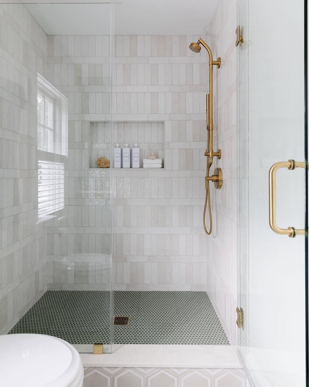 It’s simple, but not plain. The little details—like the niche shelving and tile pattern—add just enough interest to keep it from feeling too sterile.
