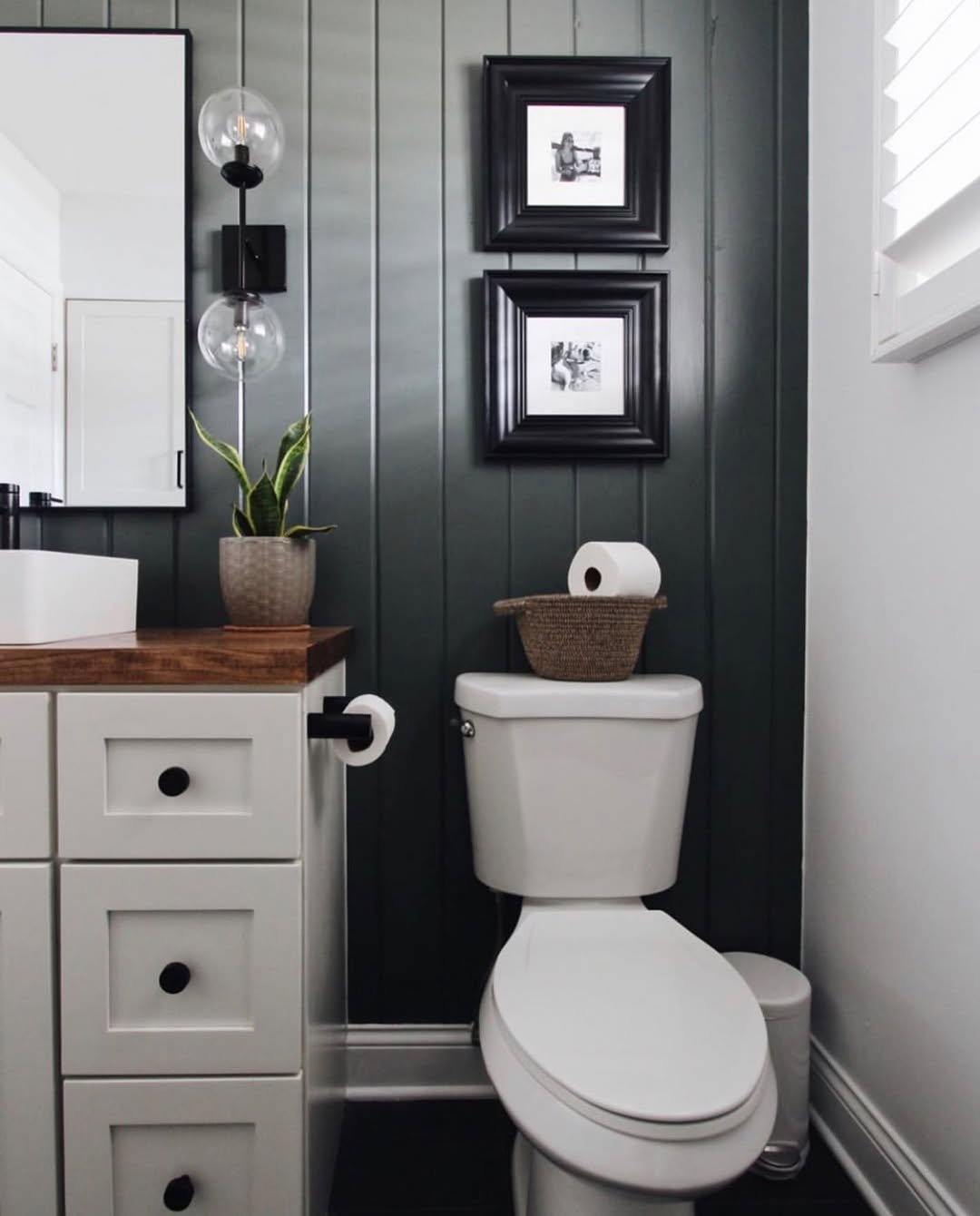 This one proves you don’t need a big space to make a statement. That deep green panel wall instantly adds depth, while the black accents keep everything feeling sharp and modern.