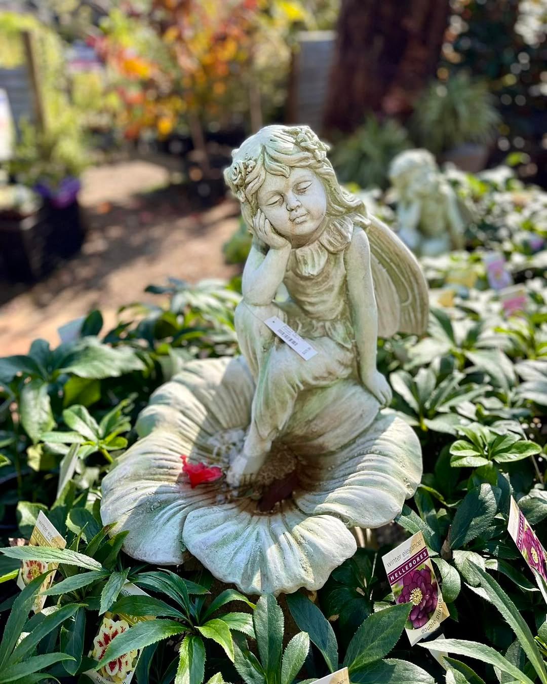 This one leans softer, almost nostalgic. A small angel resting on a flower base, surrounded by greenery, feels peaceful in a way that’s hard to explain but easy to feel.