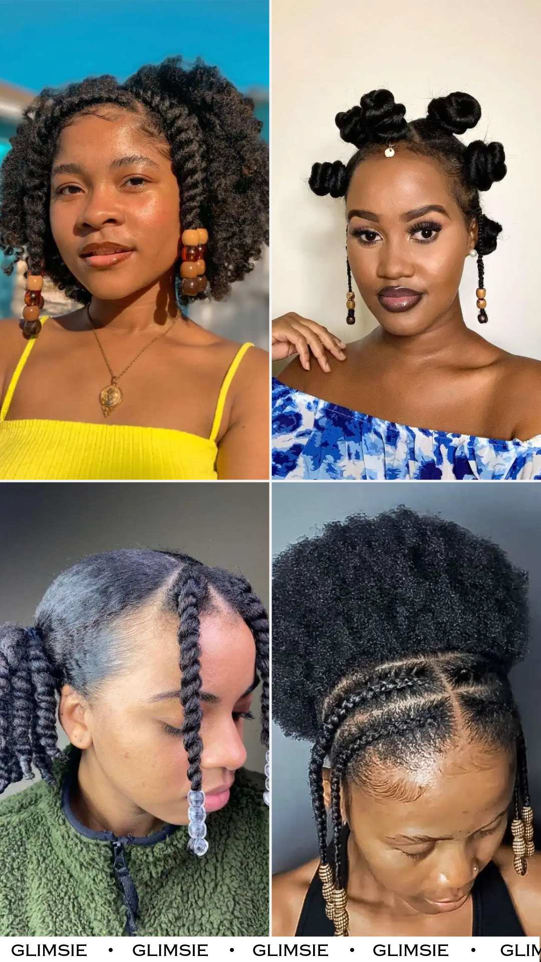 These front-braided sections are so clean and defined, leading into a full, rounded puff that truly celebrates natural volume. The beaded ends add warmth and character, like a nod to tradition wrapped in modern styling.