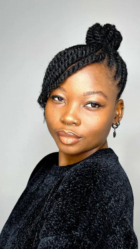 What keeps it extra special is how the twists frame the face softly, giving it that warm, welcoming glow. It’s minimal, but with intentional detail that makes you lean in for a closer look.