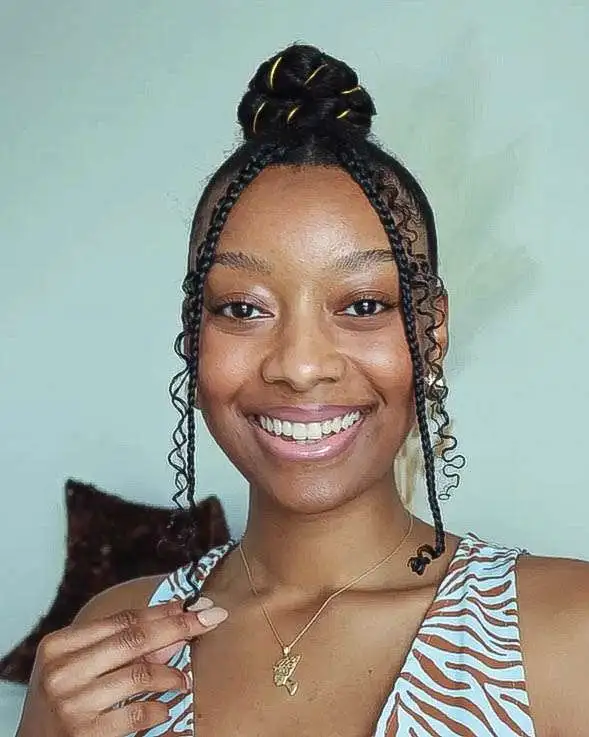Bold curls paired with two clean, structured braids — such a striking mix. The contrast creates instant dimension, making the curls look even fuller and more vibrant. It’s the sort of style that feels both artistic and easygoing, like you didn’t overthink it… even though it looks perfectly curated.