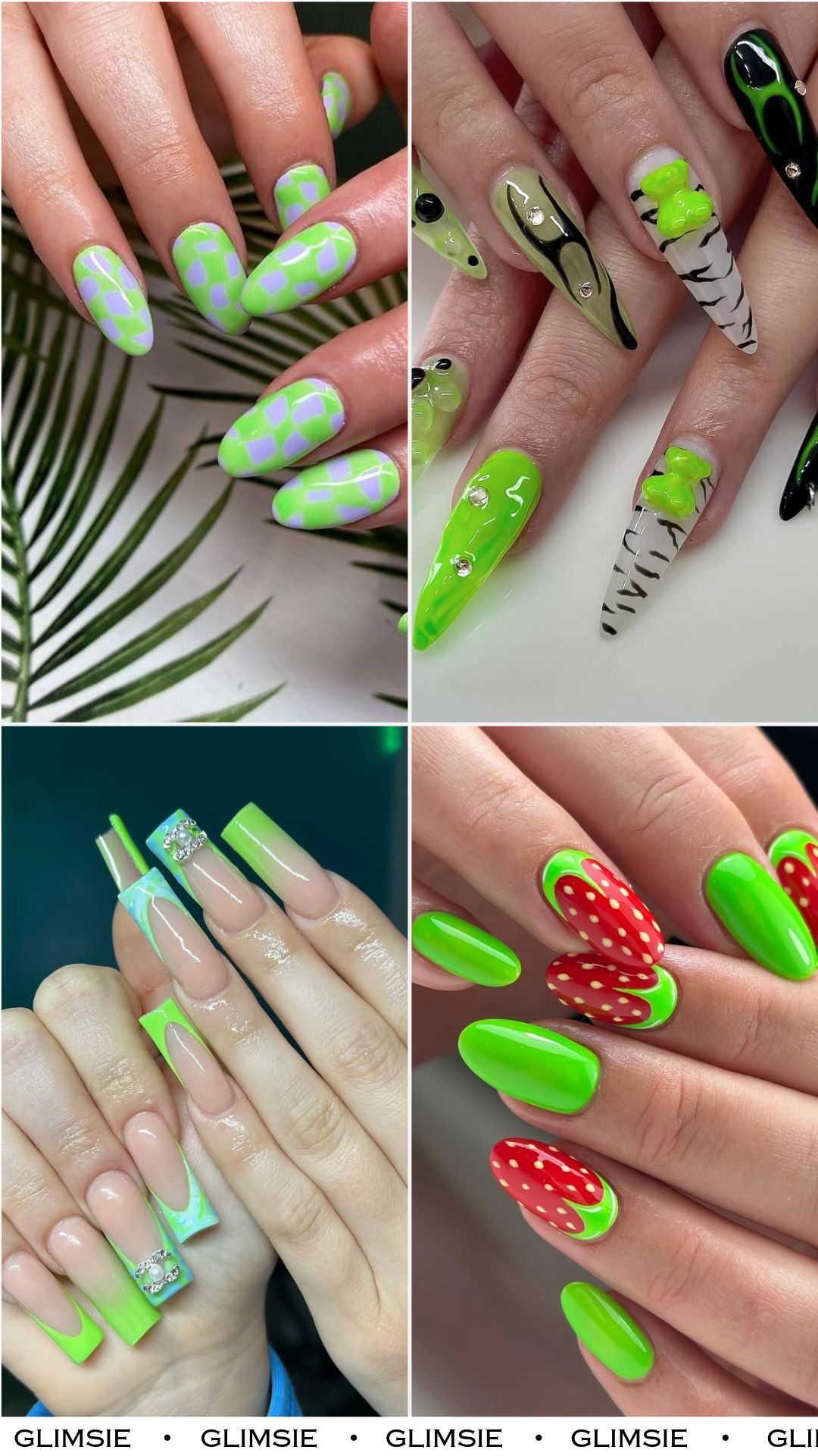 From glossy full-color nails to creative designs with chrome accents, abstract patterns, and playful details, neon green offers endless ways to experiment with bold style. In this list, you’ll discover striking nail inspiration and creative ideas that show how electric green can turn your manicure into a fearless fashion moment.