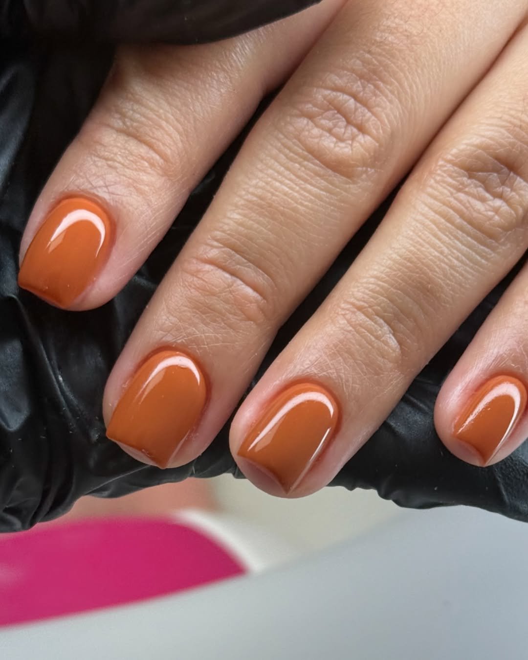 These warm caramel-brown nails are the definition of simple but striking. The short, rounded shape keeps things neat and practical, while the glossy finish gives the color a rich, almost syrupy shine that catches the light beautifully.