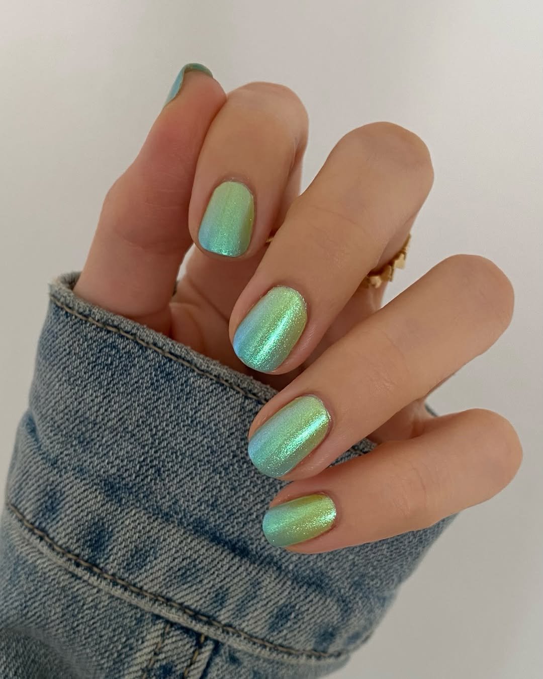 These nails shift between mint green and soft aqua depending on the light, giving them that magical iridescent glow. The subtle shimmer adds dimension without overpowering the color.