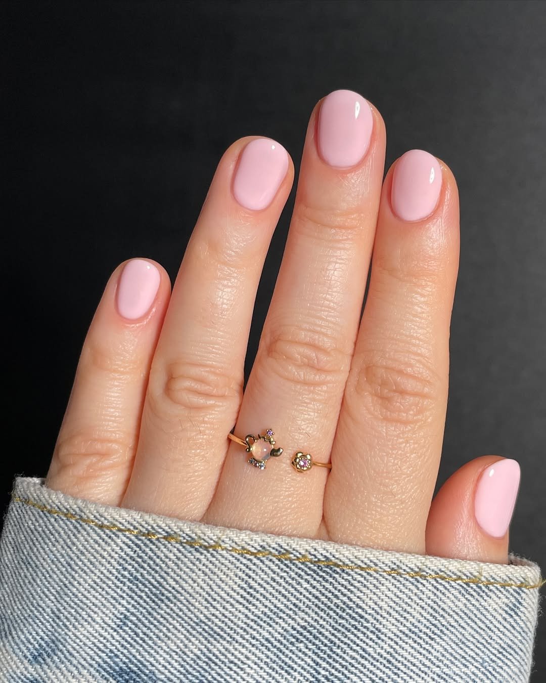 These milky pink nails have that timeless “your nails but better” vibe. The soft pastel tone looks delicate and polished, while the short length keeps things practical and natural.