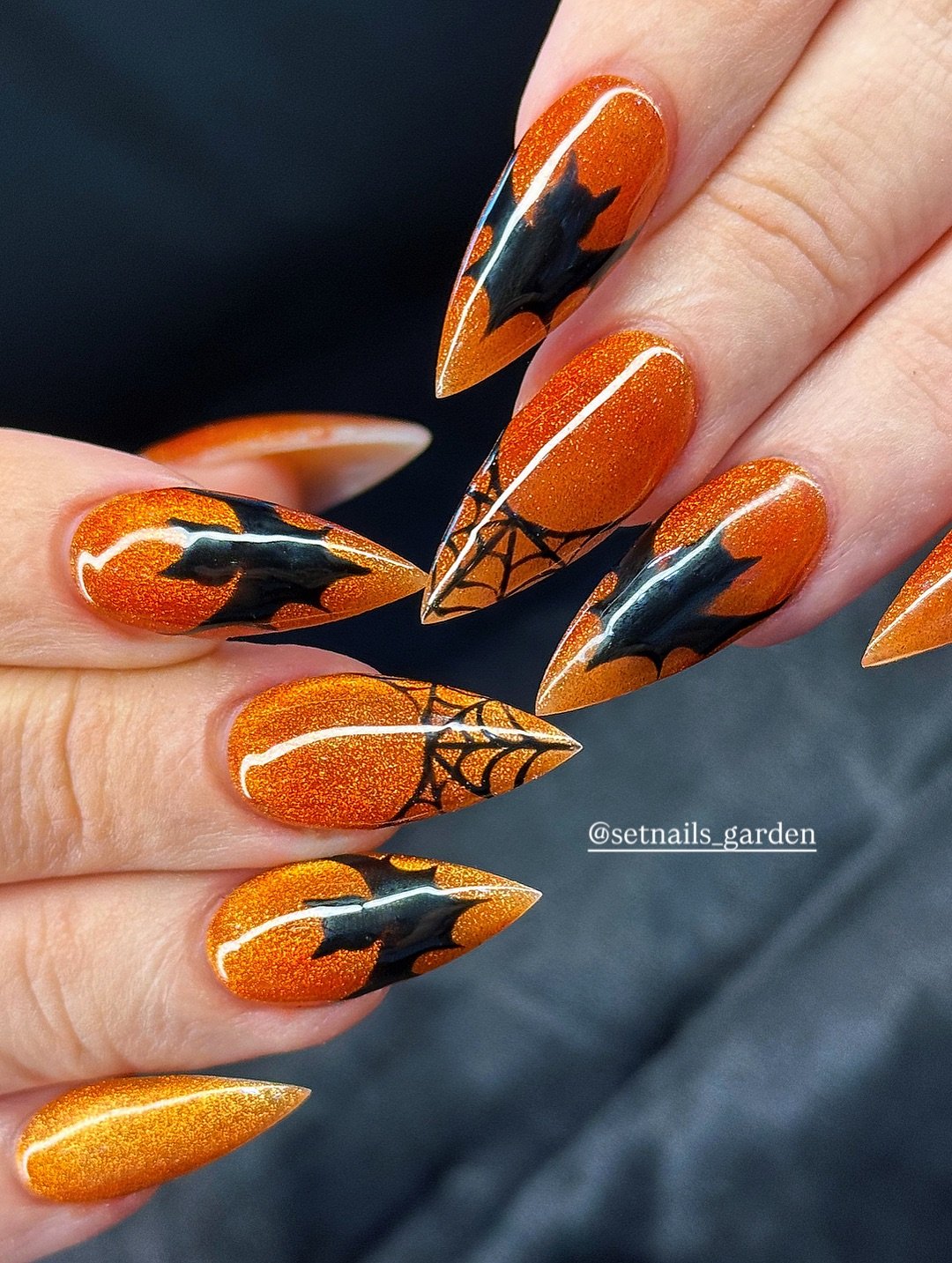 The pointed stiletto shape really completes the look. It’s bold, dramatic, and perfect for anyone who loves seasonal nails that still feel stylish.
