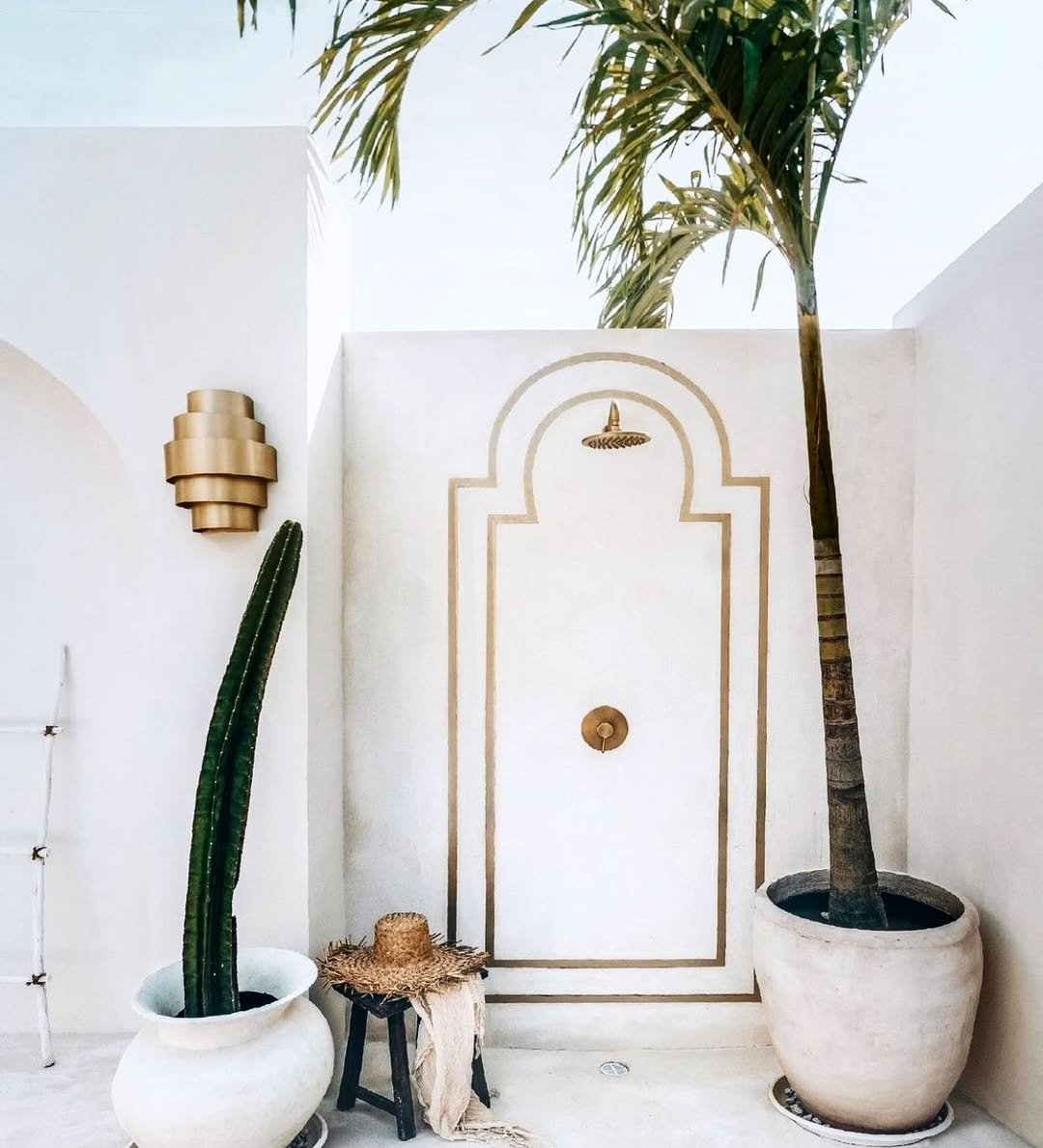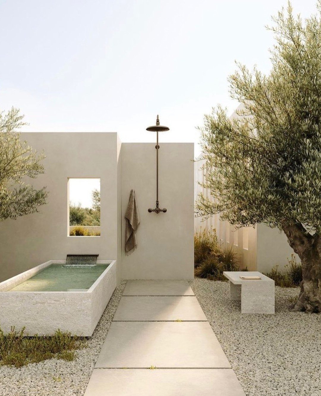 This one leans into softness and calm. The open-air feel, clean lines, and subtle greenery create a space that feels like a quiet retreat tucked inside a villa somewhere warm and breezy.