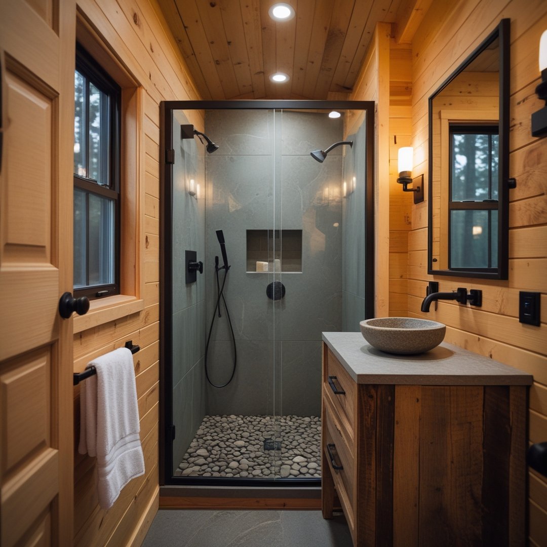 Compact, smart, and surprisingly cozy. This tiny bathroom makes the most of every inch with its glass shower, warm wood paneling, and clean layout.