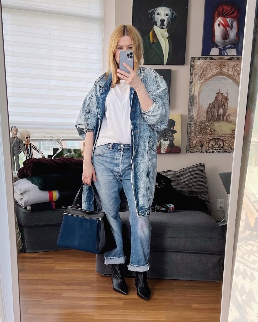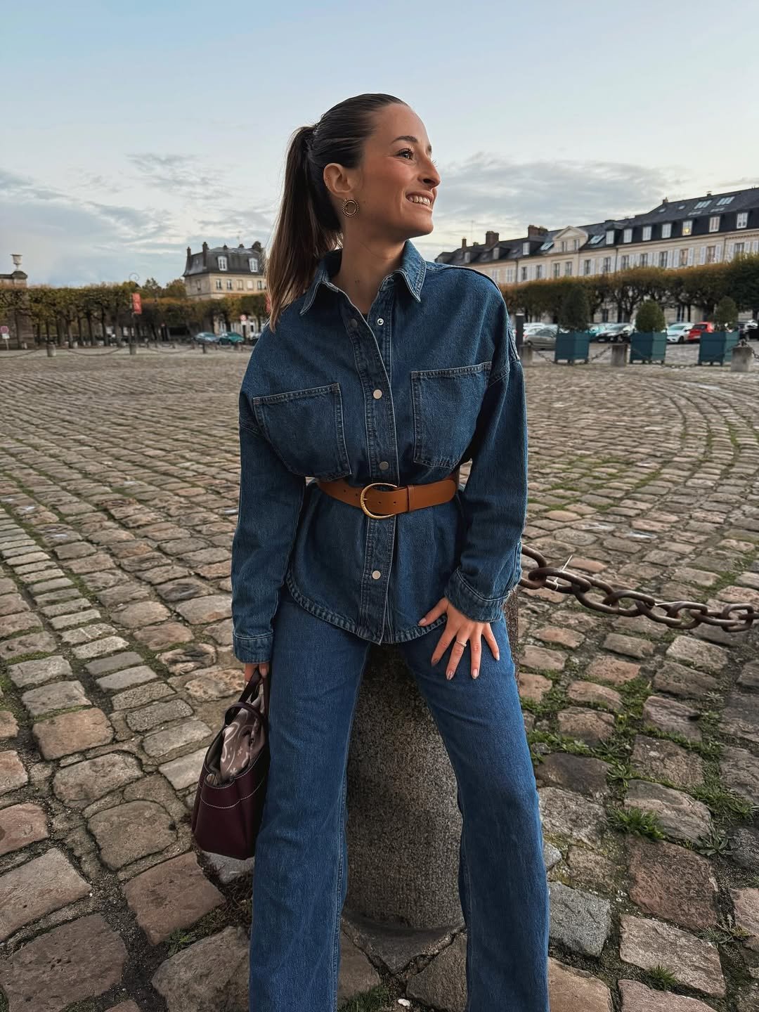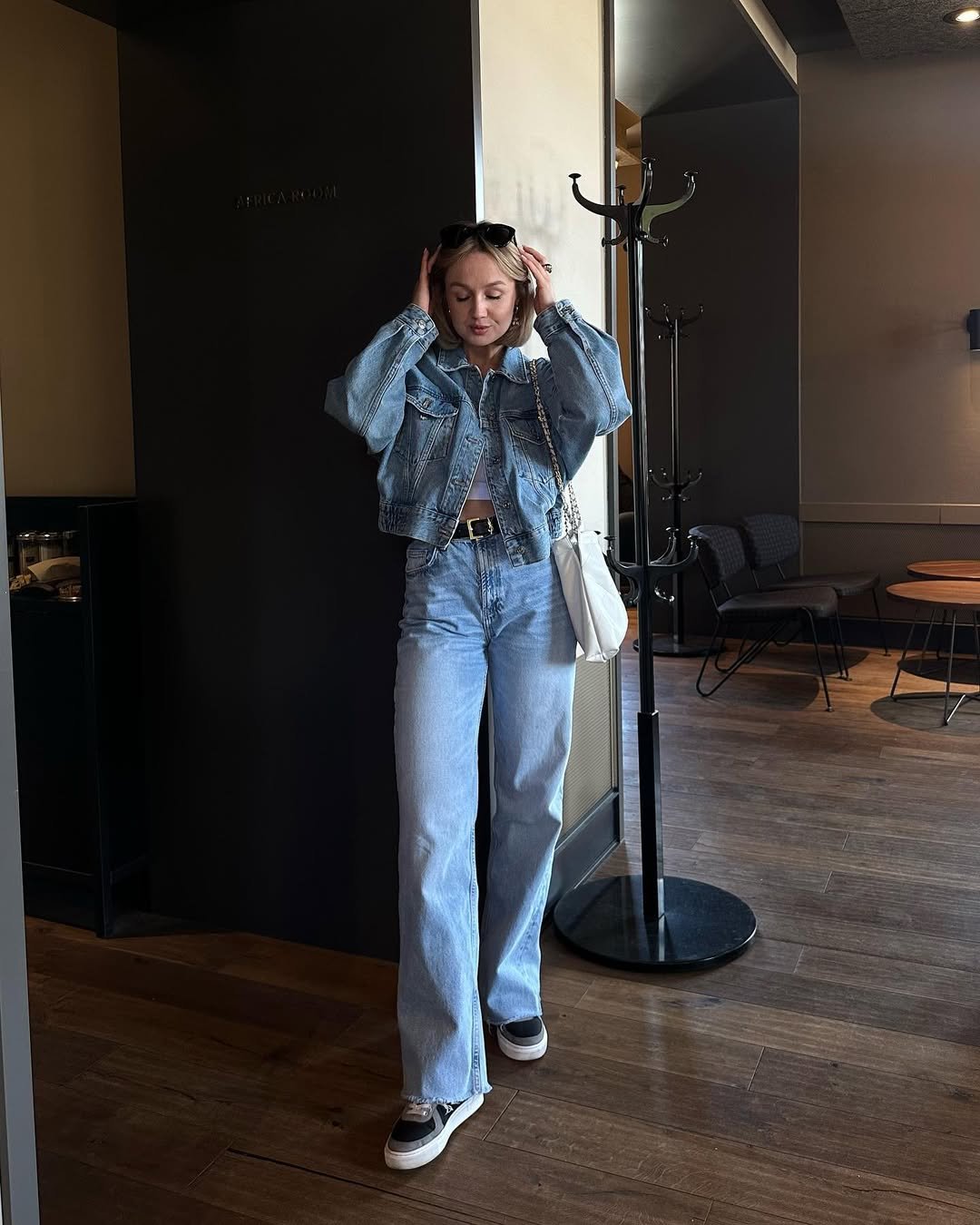 I love how unfussy it feels. The simplicity lets the textures do the talking, proving that denim on denim doesn’t need styling tricks to look good.