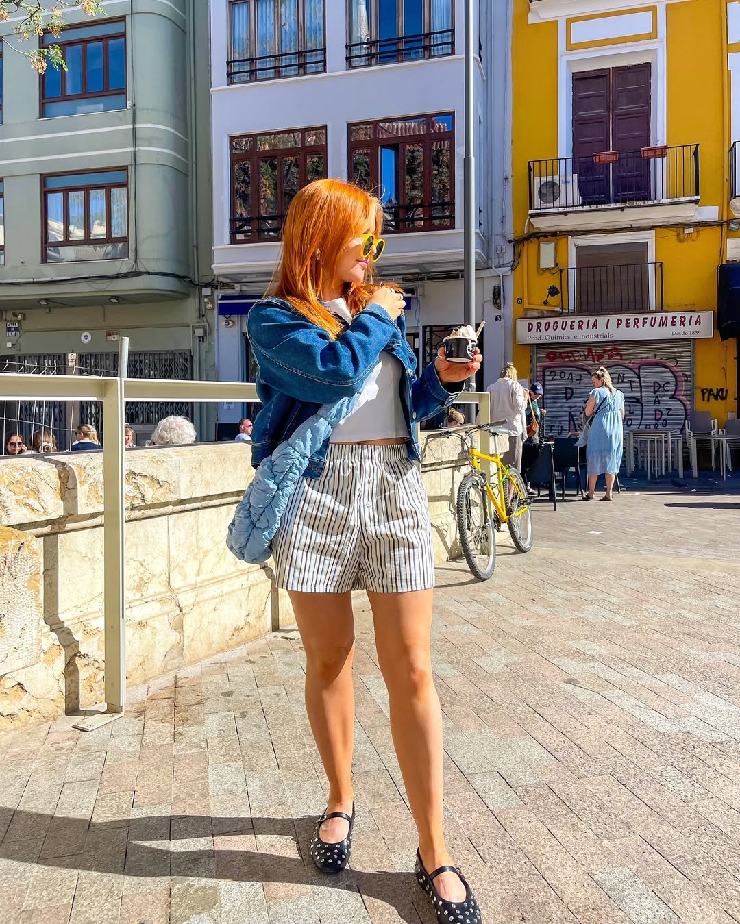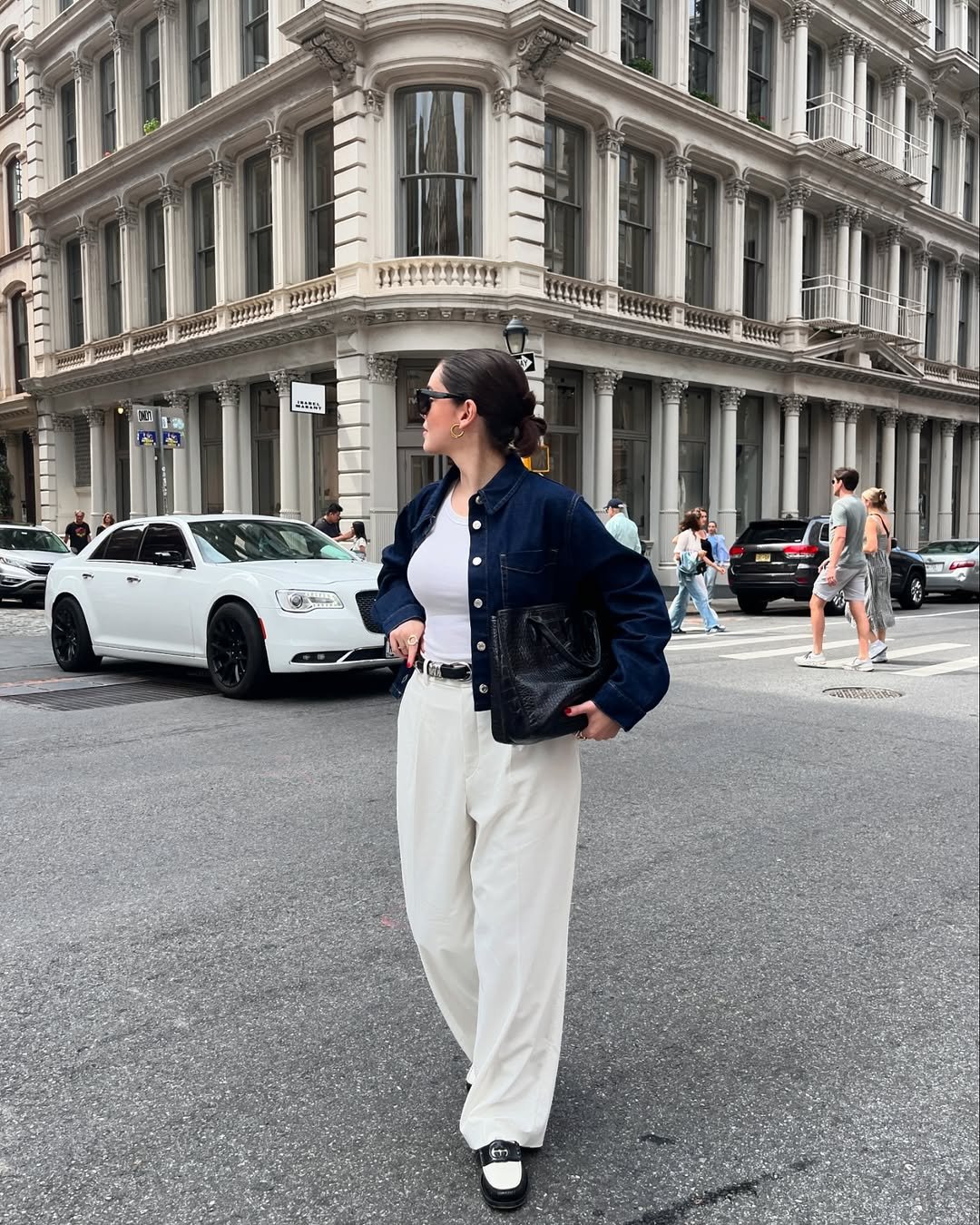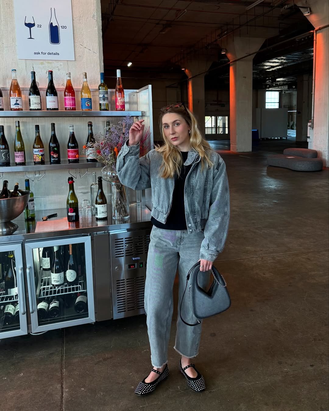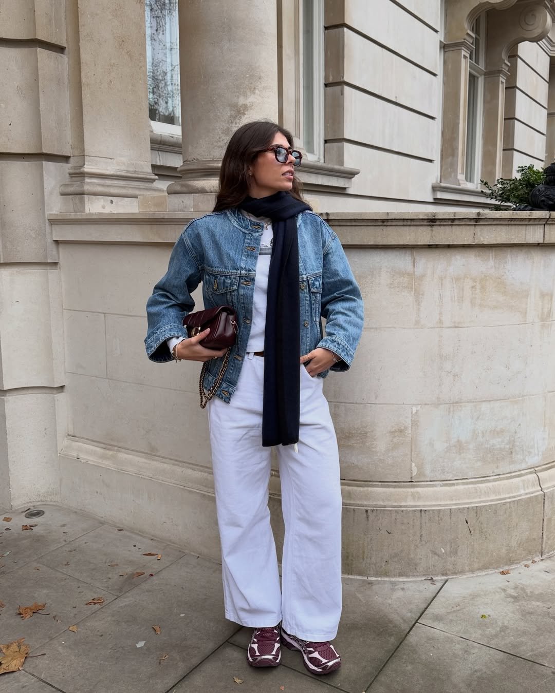This look leans into that effortless, off-duty energy. The jean jacket grounds the outfit, giving it shape while keeping the mood relaxed and modern.