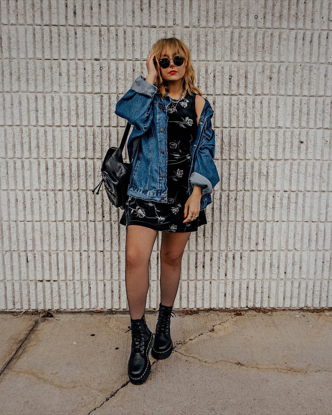 This look plays with contrast in the best way. The jean jacket softens the edge of the outfit, creating balance without dulling its personality.