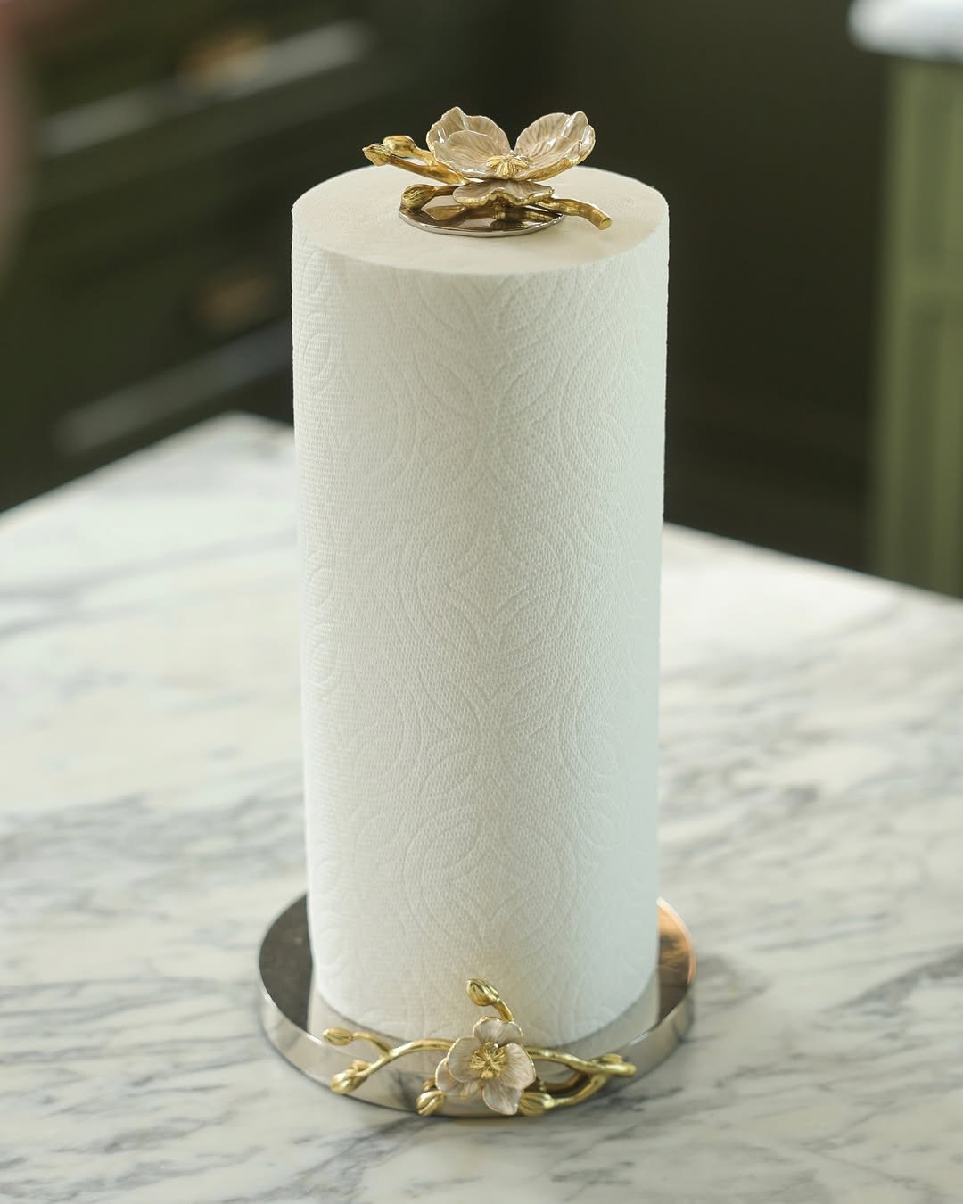 This is where function meets art. The delicate floral detail transforms the paper towel holder into something almost sculptural.