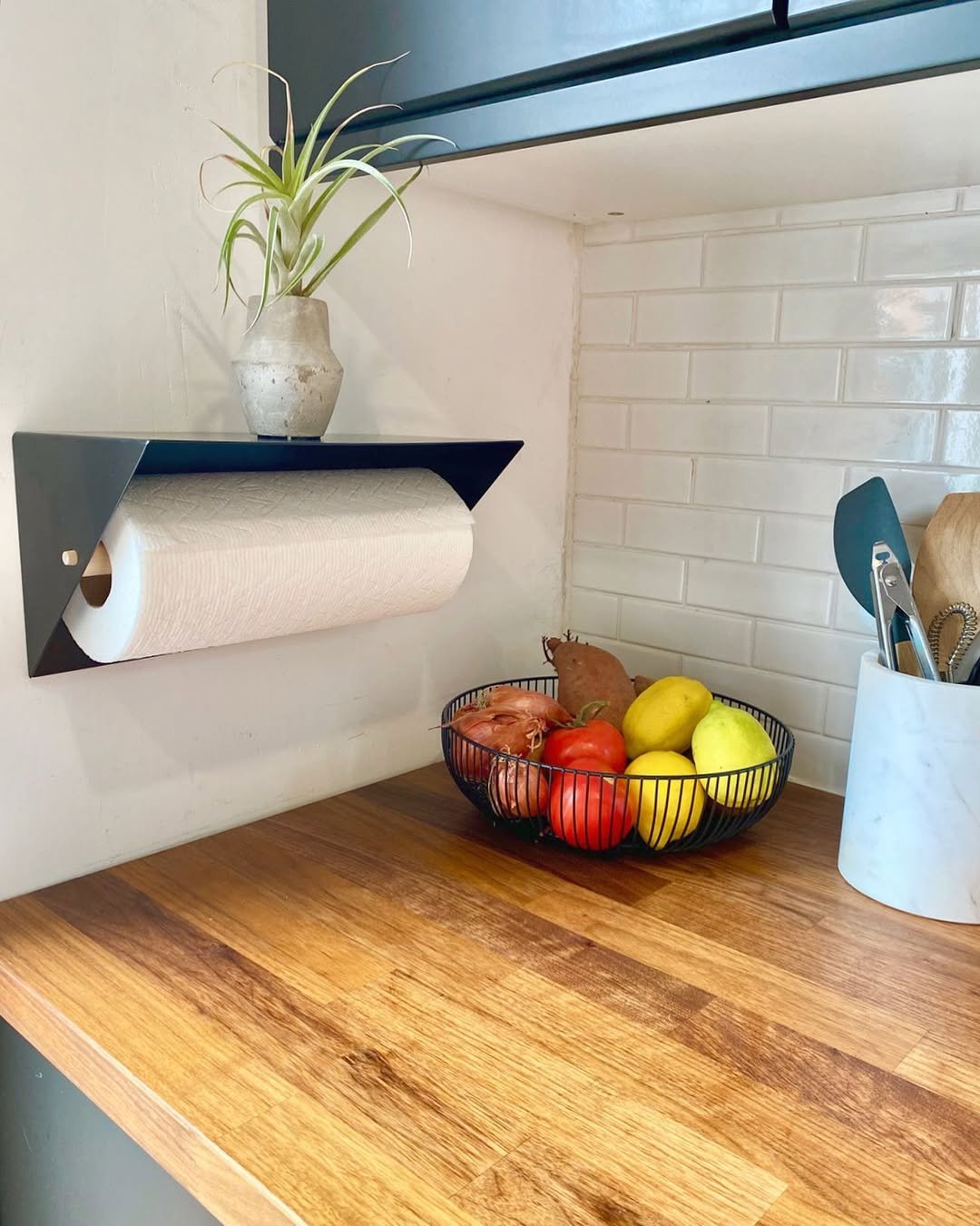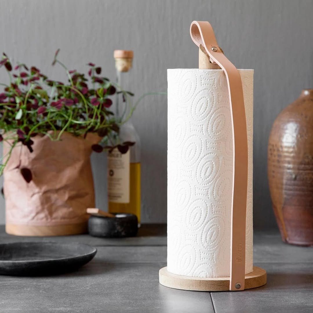 There’s something about leather that instantly elevates things. This simple strap design turns a basic paper towel holder into something warm and slightly elevated.