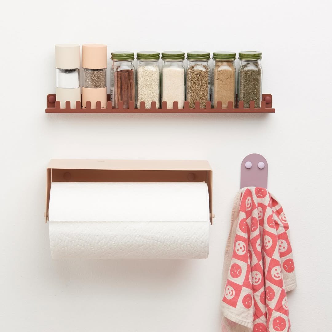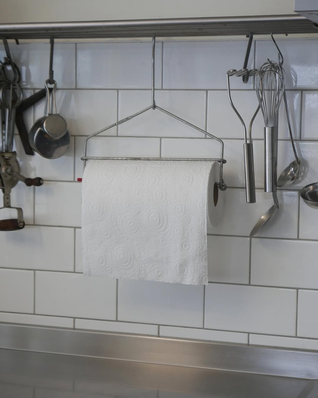 This is such a clever twist. Instead of a traditional holder, it hangs right off a kitchen rail—easy to grab and even easier to install.